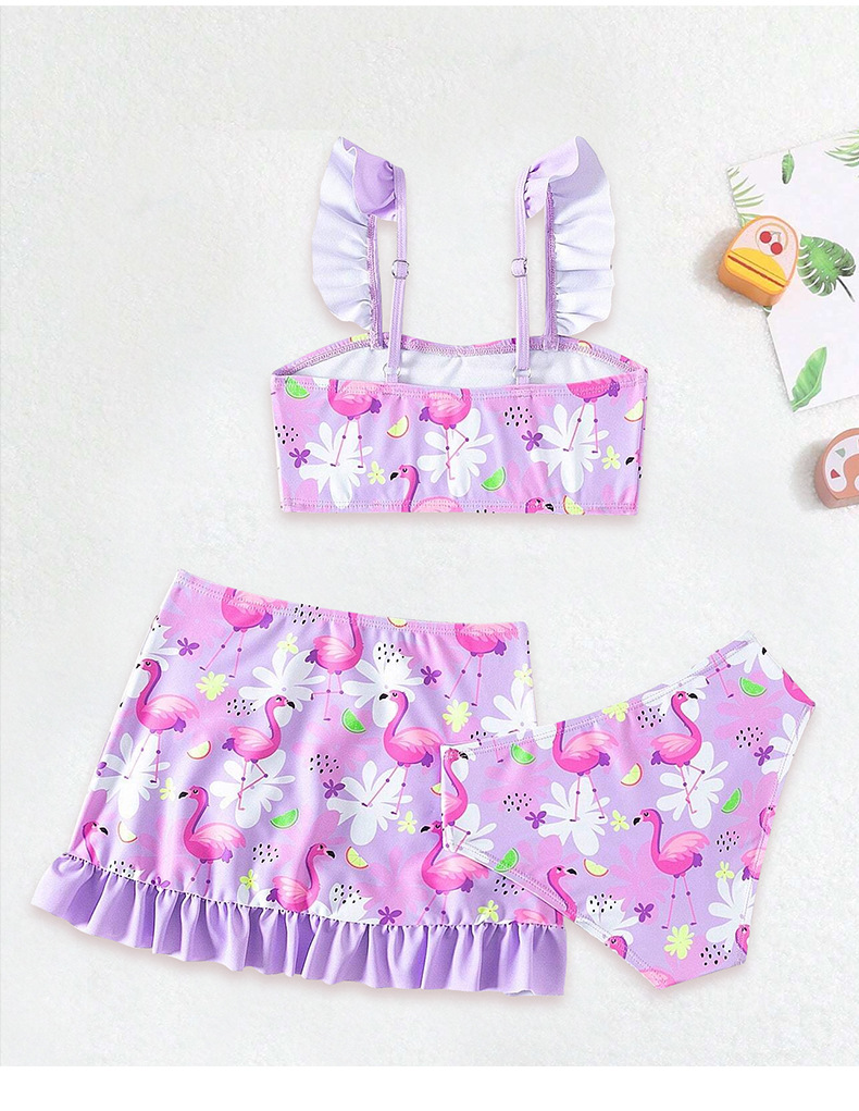 2025년 신상 아동 수영복 3피스 세트 여아 분리형 수영복 중소 아동용 크로스보더 퍼플 수영복 수출용