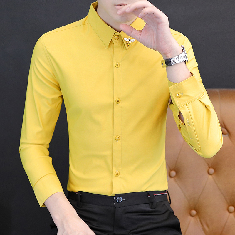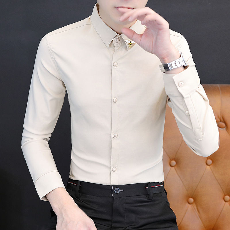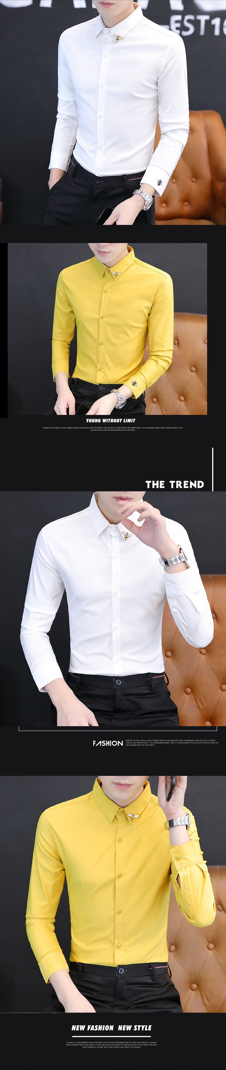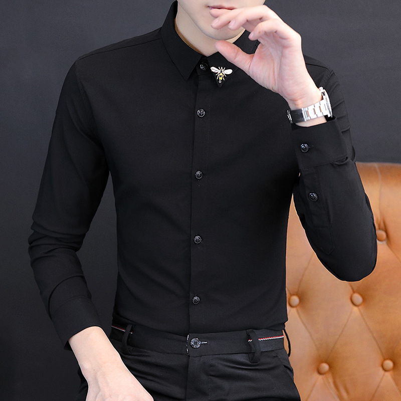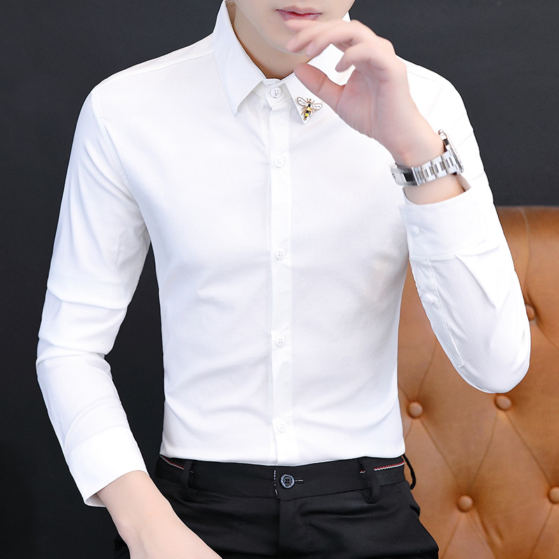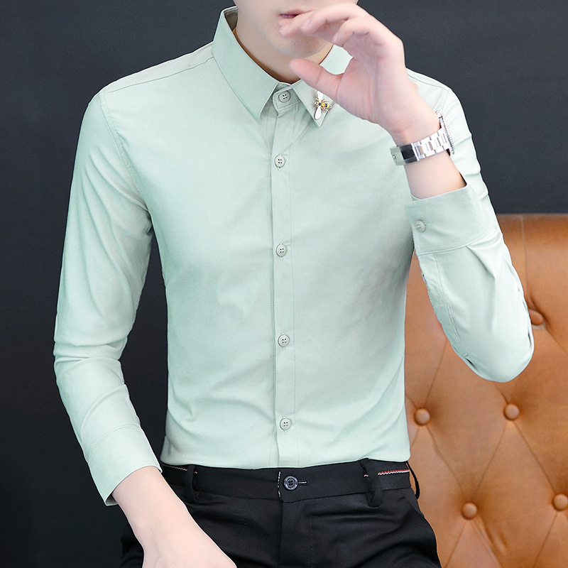 새로운 스타일의 개성 셔츠 남자 긴팔 슬림 핏 한국 스타일 더피 잘 생긴 헤어 스타일리스트 파일
