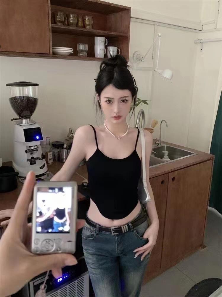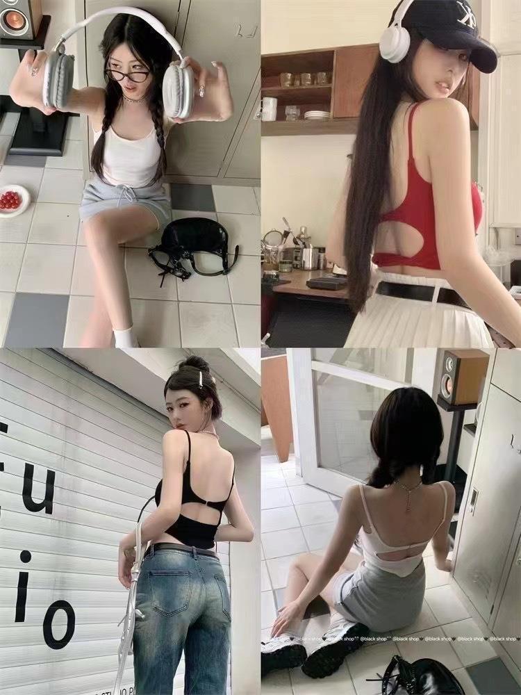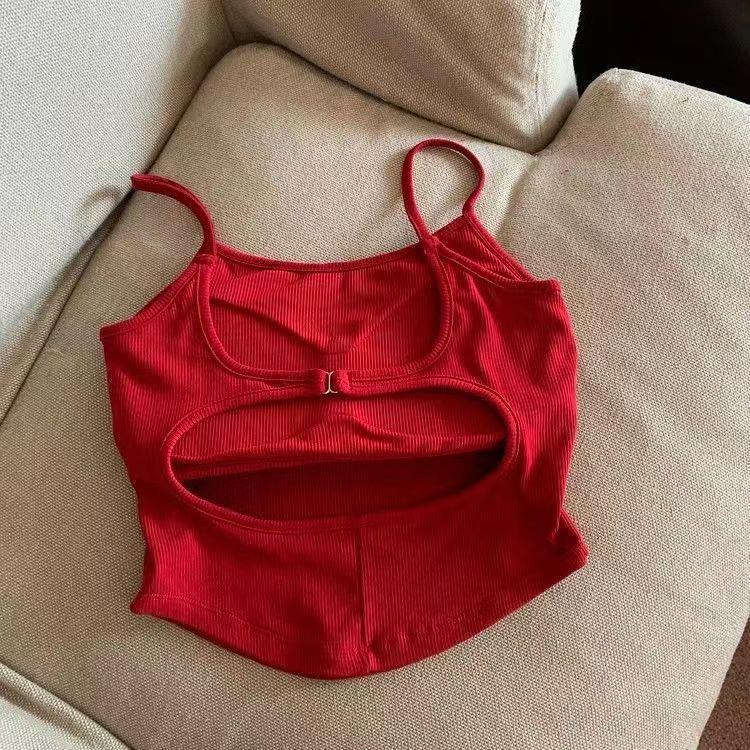 여름 새 스타일 뜨거운 소녀 할로우 뷰티 스트랩 가슴 패드 카미솔 여성용 내복 외복 섹시한 백리스 한국 스타일스토어 가기