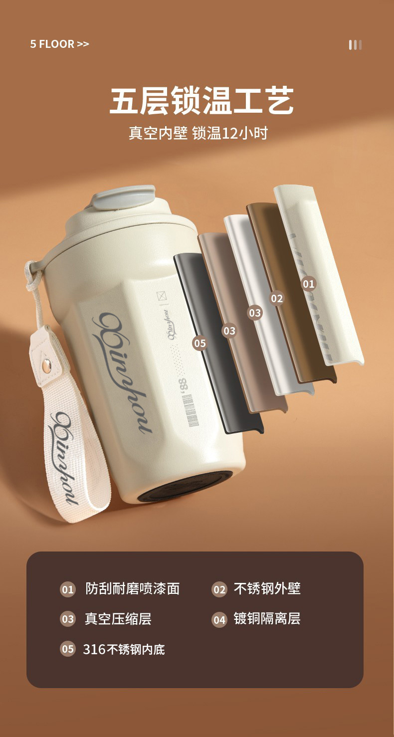 높은 색상 가치 편리한 컵 휴대용 귀여운 동반 컵 학생들을위한 스테인레스 스틸 보온병 컵 소녀들을위한 새로운 커피 컵