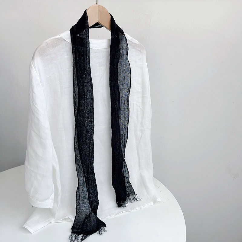 빈티지 좁은 긴 주름 스카프 여성의 여름 얇은 라미 목 보호 작은 실크 스카프 날씬한 스카프 액세서리스토어 가기