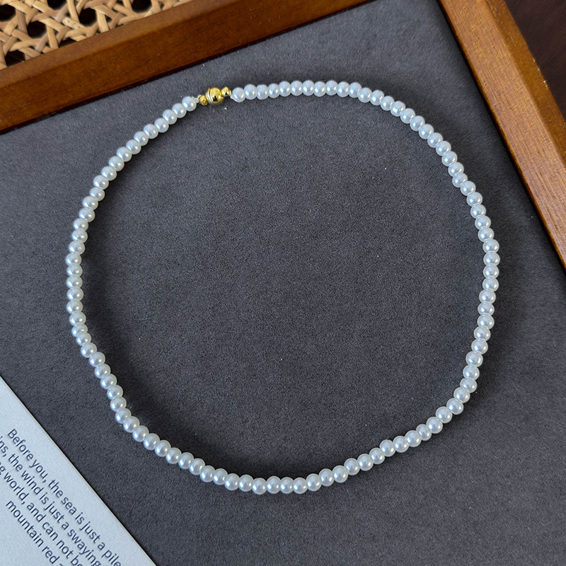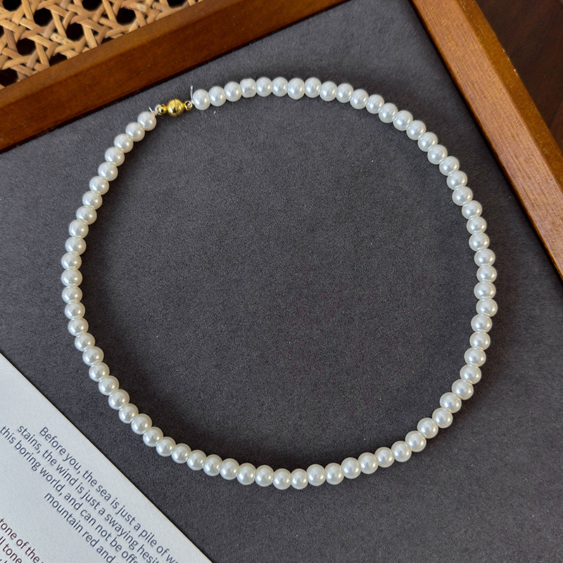 마그네틱 버클 호주 화이트 라운드 진주 목걸이 여성의 가벼운 고급 틈새 여름 쇄골 체인 2024 새로운 액세서리