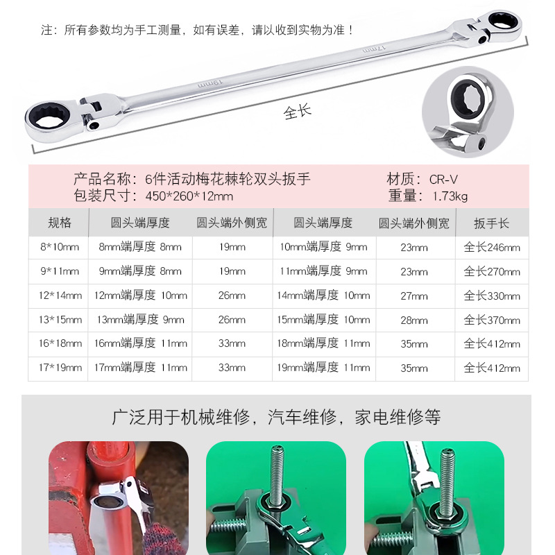 액티브 래칫 렌치 빠른 렌치 더블 헤드 양방향 Torx 오픈 엔드 자동 수리 컨버터블 헤드 이중 목적 노동 절약 렌치 도구스토어 가기