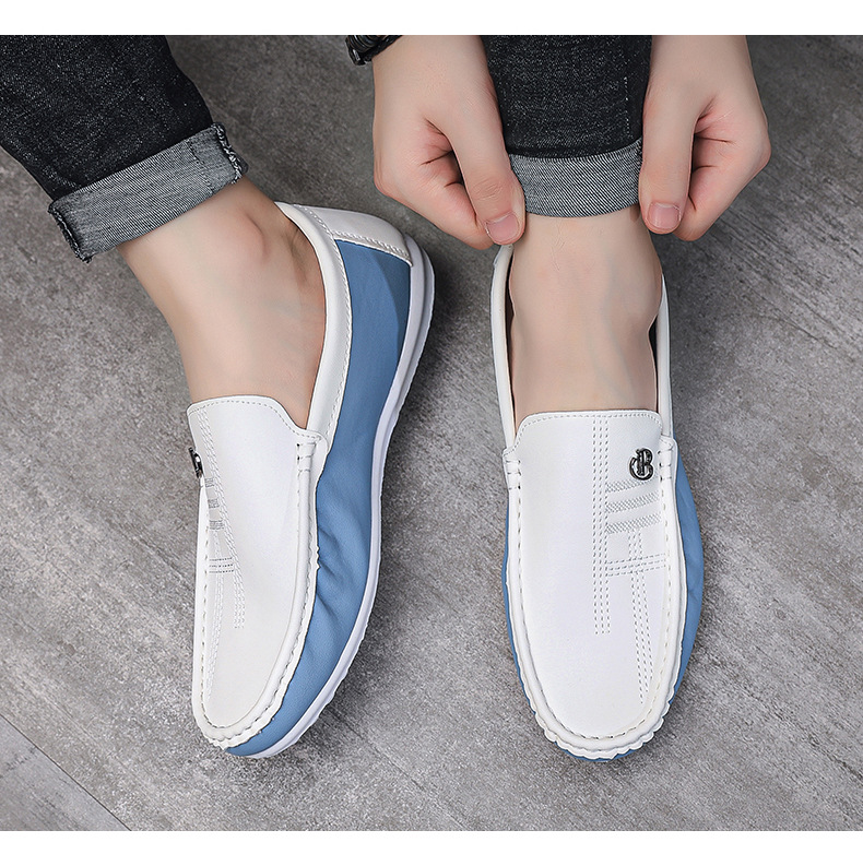 여름 새로운 남성 신발 유행 캐주얼 화이트 신발 올매치 다리 소프트 가죽 소프트 하단 로퍼 남성 신발스토어 가기