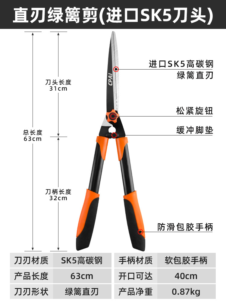 • 고급 시리즈 - 접이식 직선 모서리 울타리 가위(SK5 커터 헤드)
