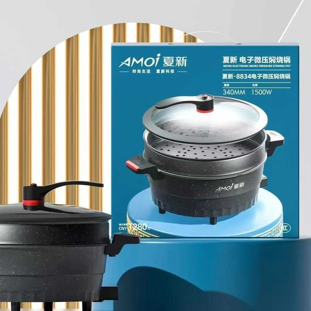 SAST 전자 마이크로 압력 냄비 찐 냄비 다기능 가정용 전기 뜨거운 냄비 대용량 튀김 및 베이킹 샤브 포트 8834/8832
