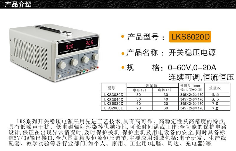 LODESTAR Leda DC 규제 스위칭 전원 공급 장치 30V10A 조정 가능한 규제 디지털 디스플레이 유지 보수 LKS3010D