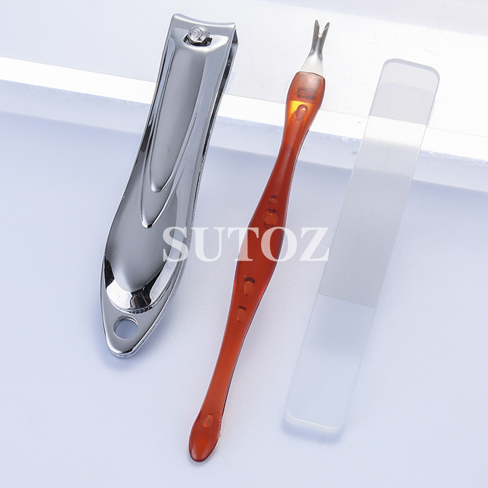 국경 간 새로운 네일 가지 치기 도구 네일 클리퍼 죽은 가죽 포크 나노 유리 파일 매니큐어 3 피스 세트