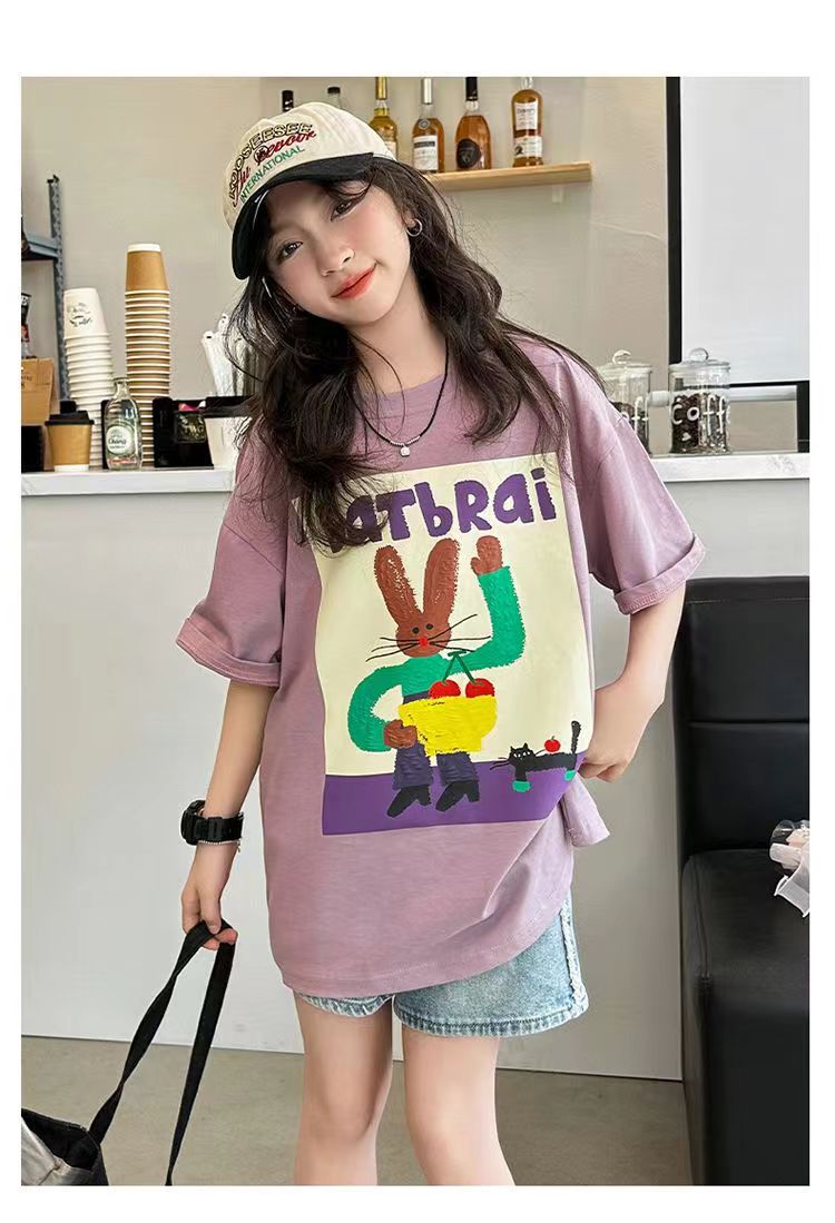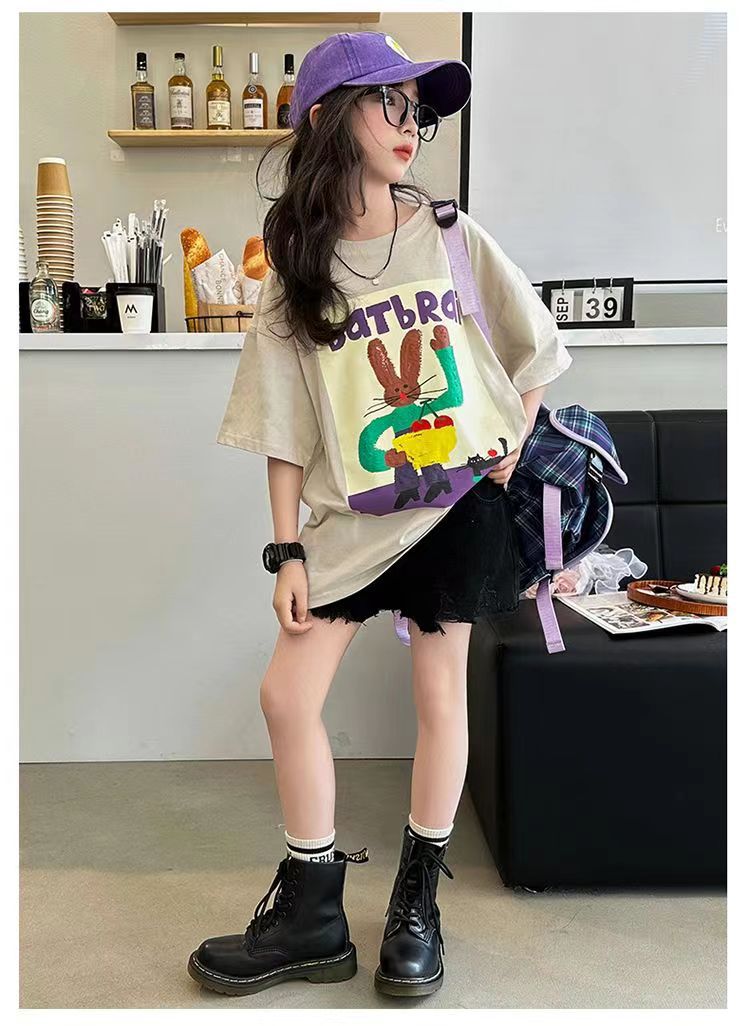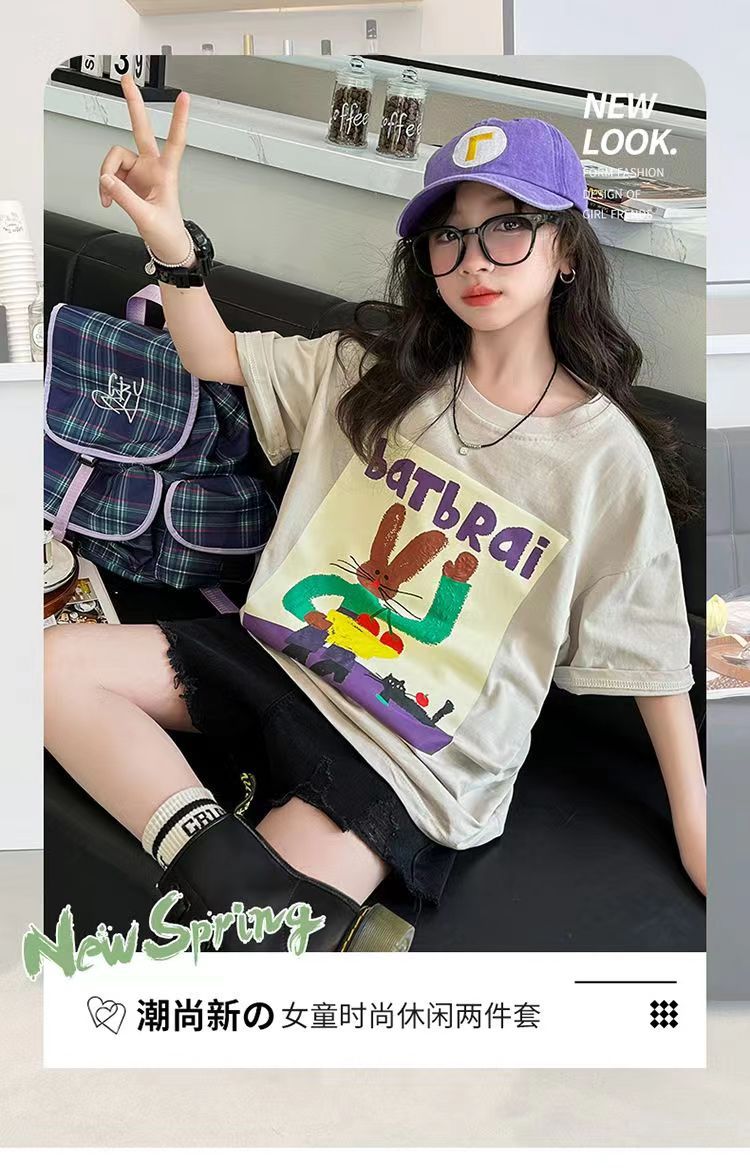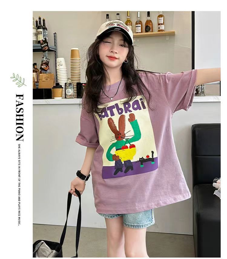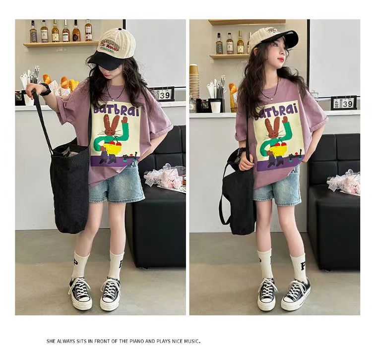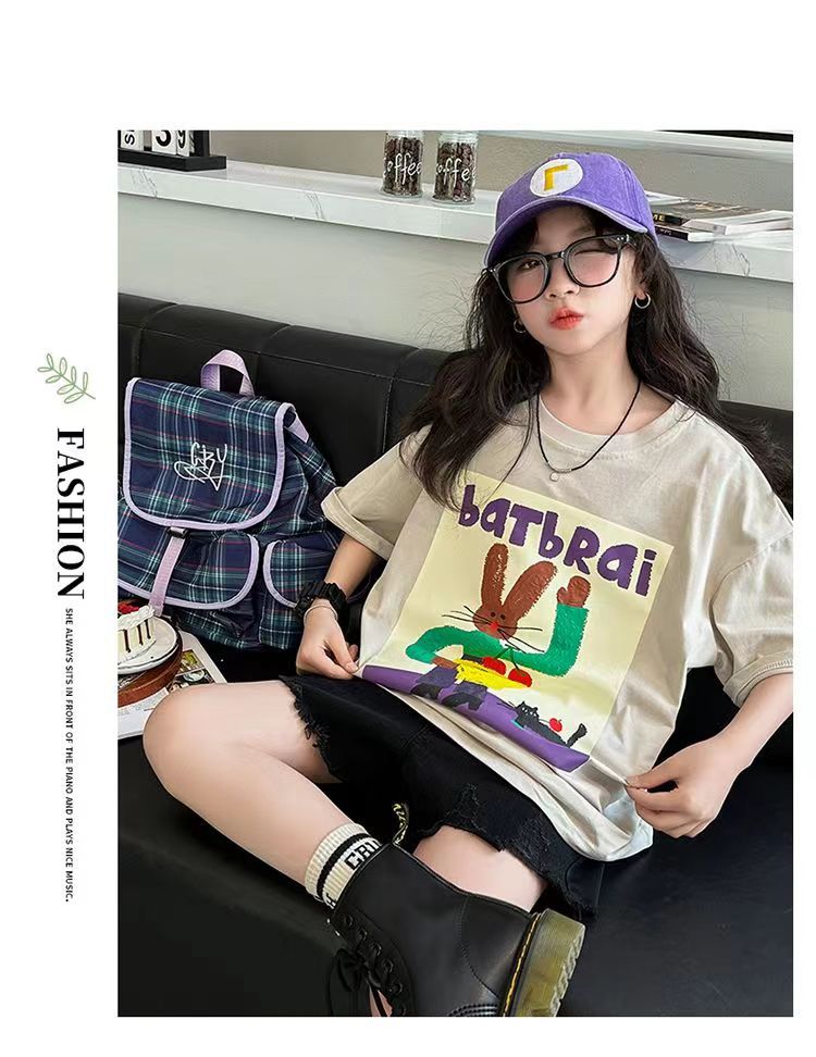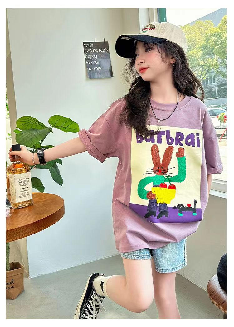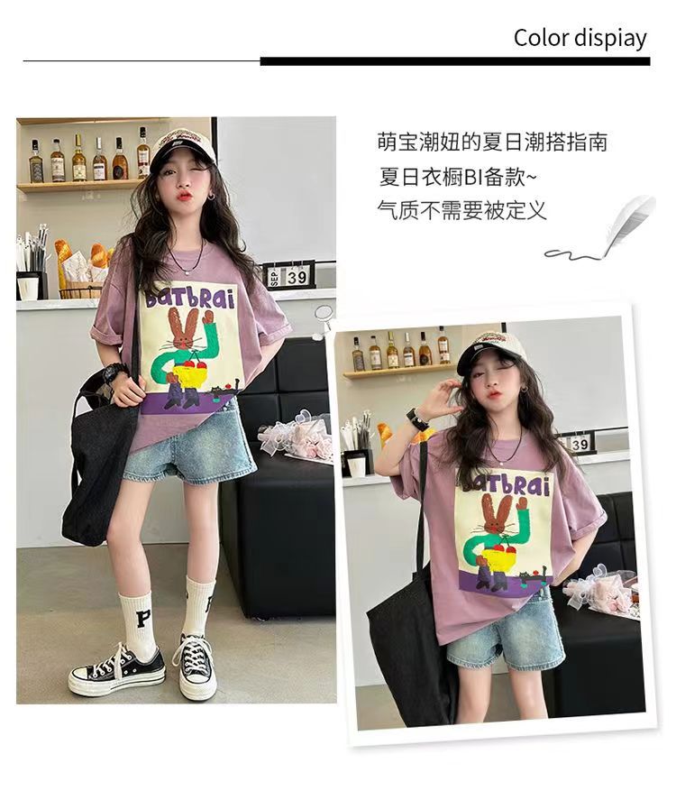 여자 반팔 티셔츠 여름 2025 새로운 어린이 탑 여자 티셔츠 중대형 어린이 여름 티셔츠 루즈스토어 가기