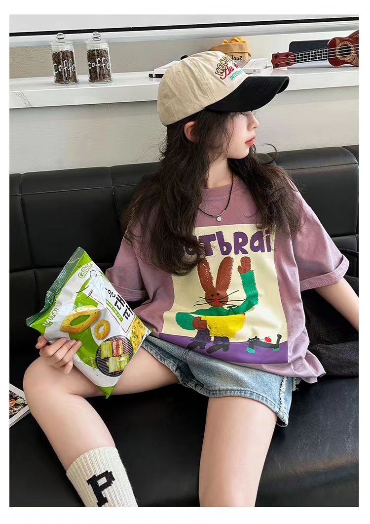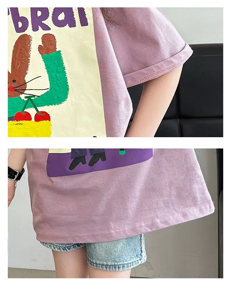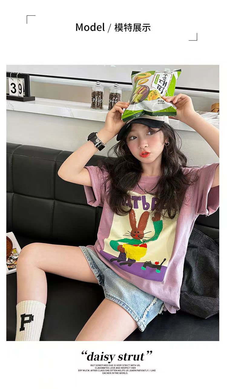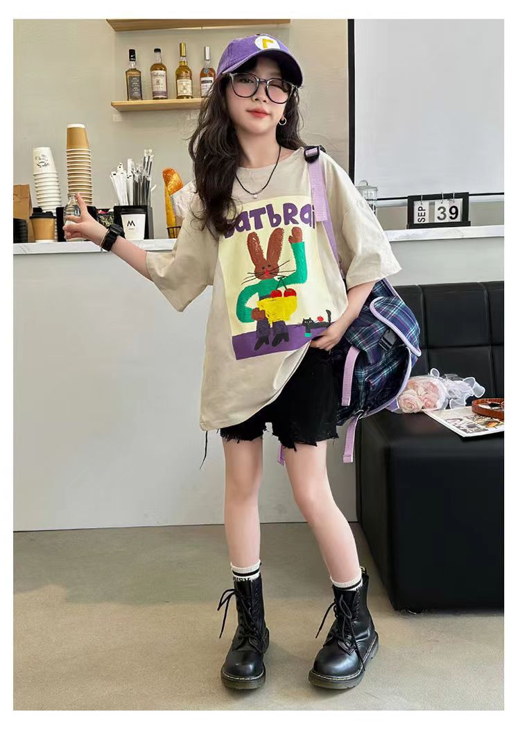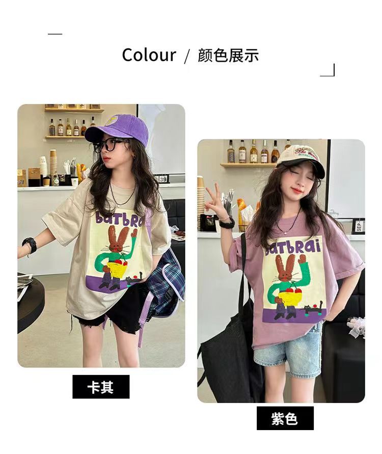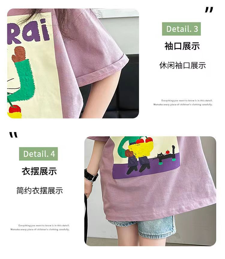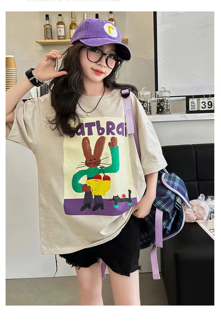 여자 반팔 티셔츠 여름 2025 새로운 어린이 탑 여자 티셔츠 중대형 어린이 여름 티셔츠 루즈스토어 가기