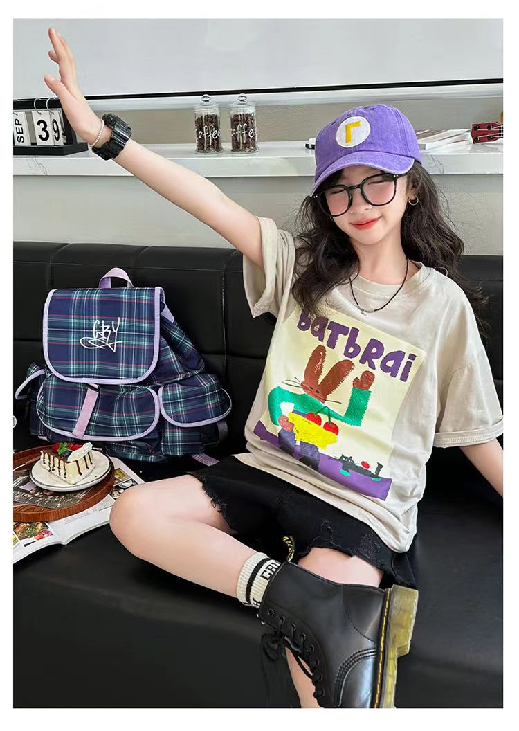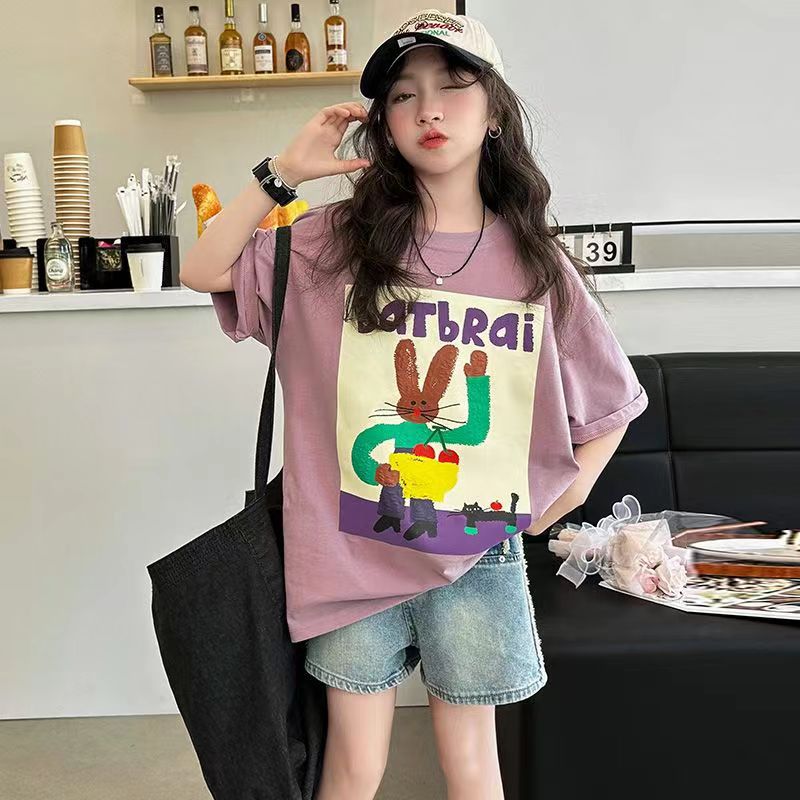 여자 반팔 티셔츠 여름 2025 새로운 어린이 탑 여자 티셔츠 중대형 어린이 여름 티셔츠 루즈