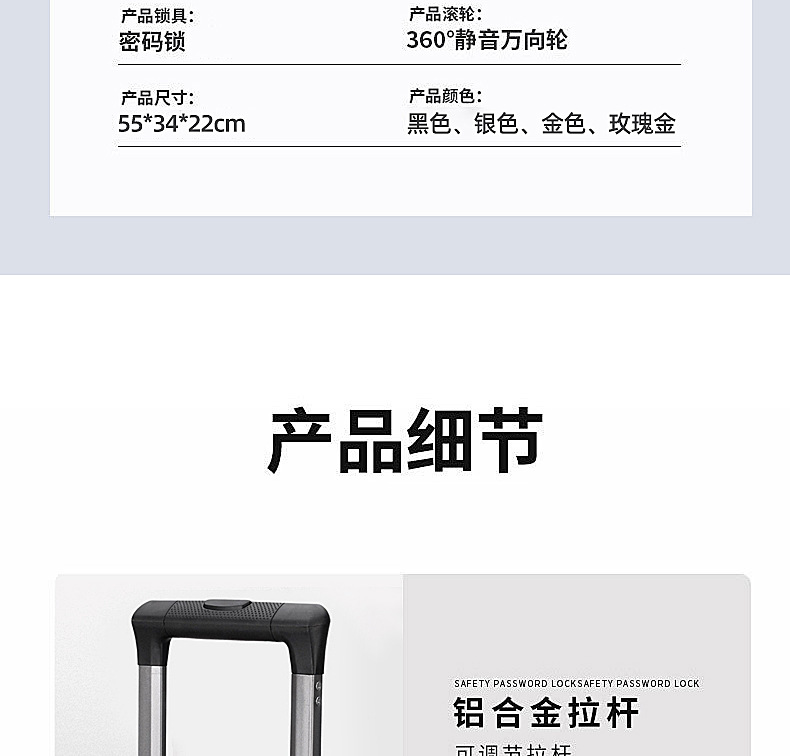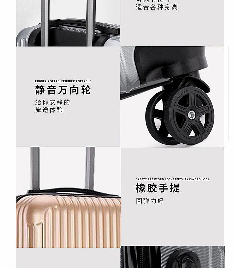 기내용 레버형 여행가방 20inch 지퍼형 대용량 회전바퀴 여행가방 비밀번호 잠금 여행가방 20inch 기내용 가방 경량형스토어 가기