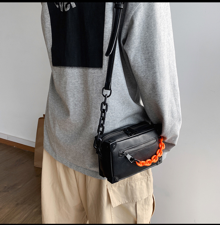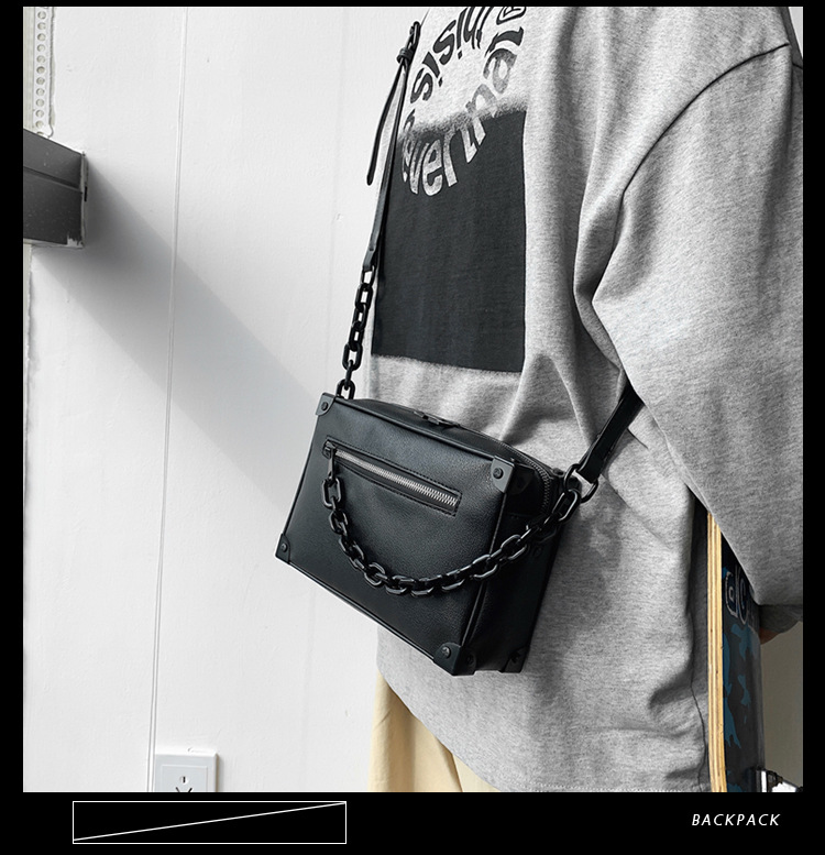 트렌디 한 브랜드 크로스 바디 백 남성용 숄더 백 한국식 하이 텍스처 체인 박스 백 슈퍼 핫 대학생 박스 백