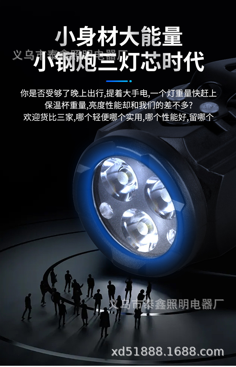 폭발성 3 눈 손전등 알루미늄 합금 휴대용 충전식 손전등 멀티 기어 조절 가능한 높은 내구성 야외 조명스토어 가기