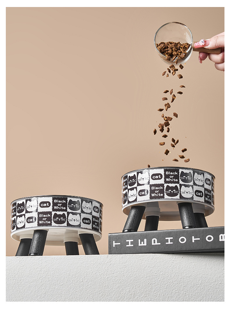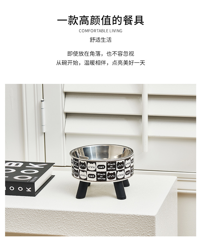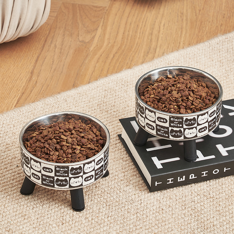 2024 새로운 애완 동물 그릇 검은 입 고양이 목 그릇 스테인레스 스틸 대용량 개 그릇 만화 고양이 쌀 분지스토어 가기