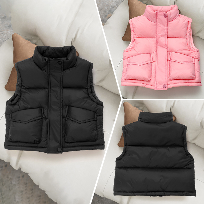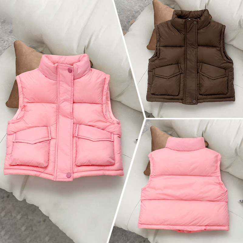 아동용 다운 코튼 조끼 2025 가을 겨울 새로운 스타일 남성과 여성의 두꺼운 포켓 조끼 겉옷 따뜻한 코트스토어 가기