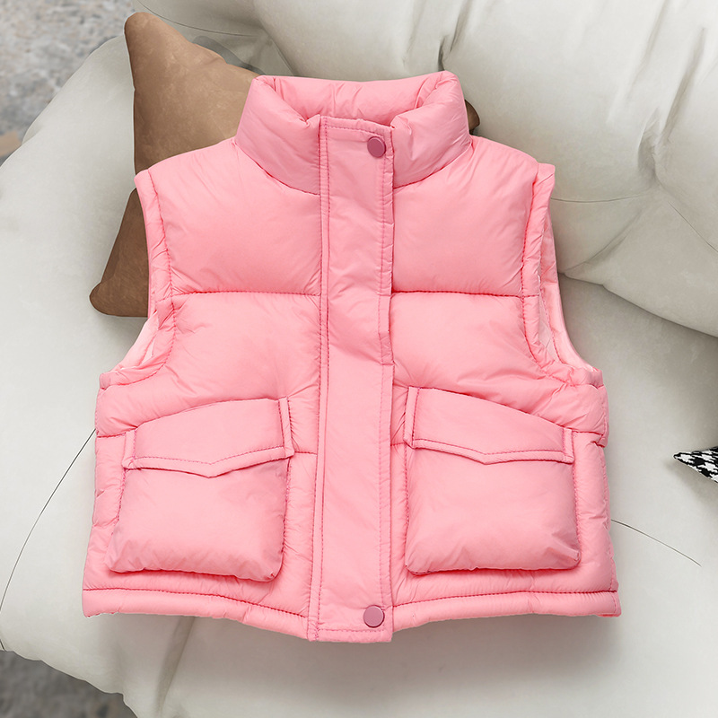 아동용 다운 코튼 조끼 2025 가을 겨울 새로운 스타일 남성과 여성의 두꺼운 포켓 조끼 겉옷 따뜻한 코트