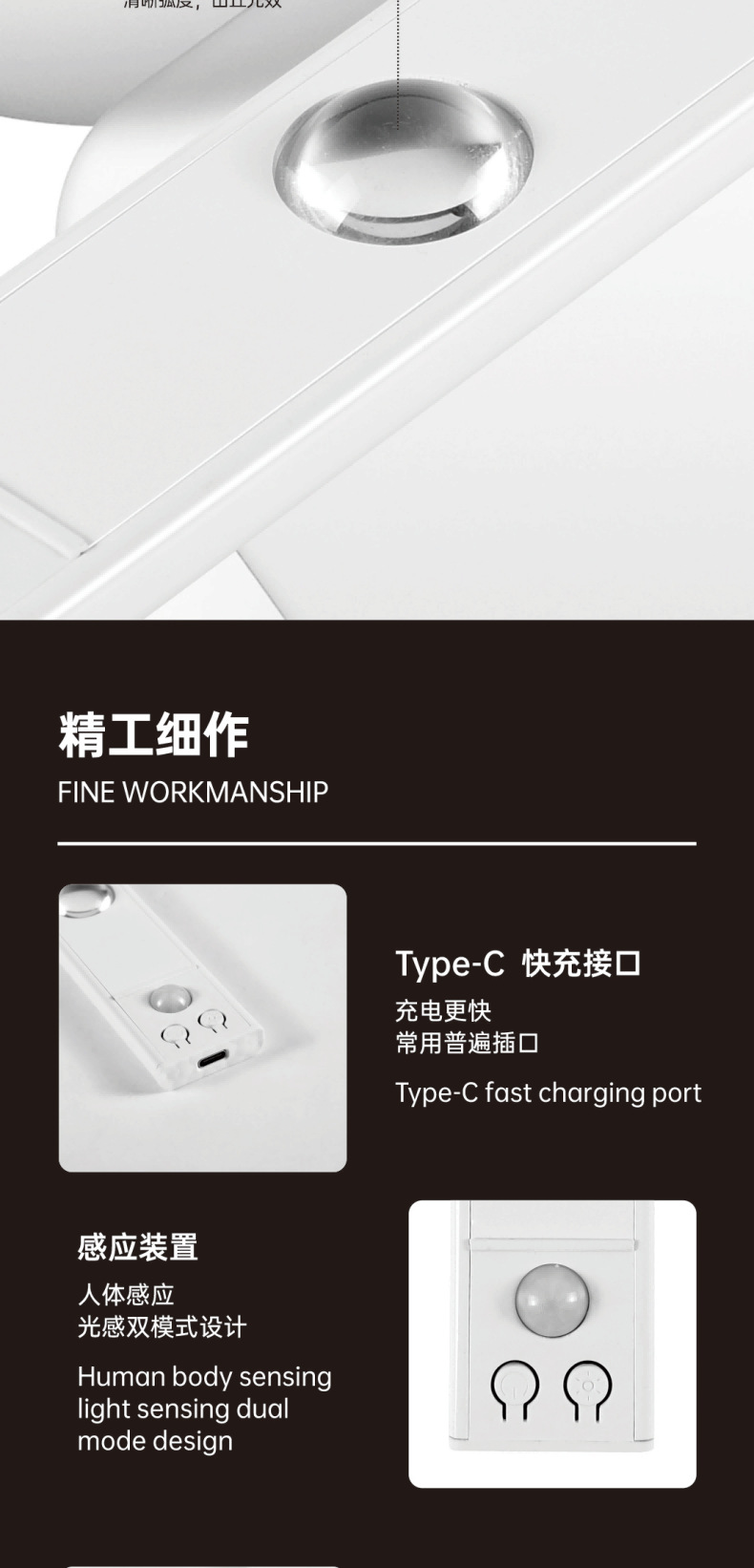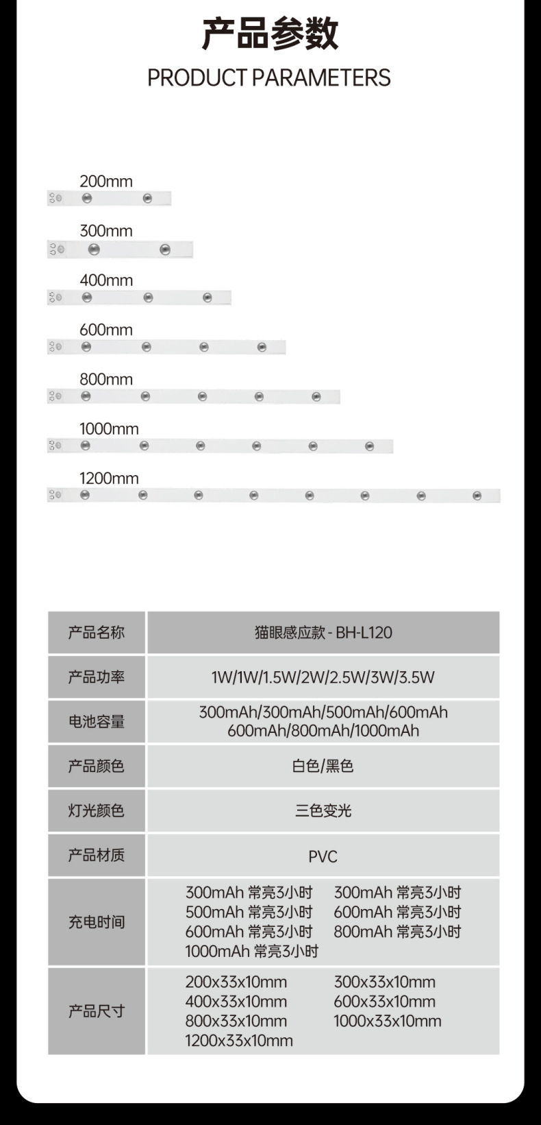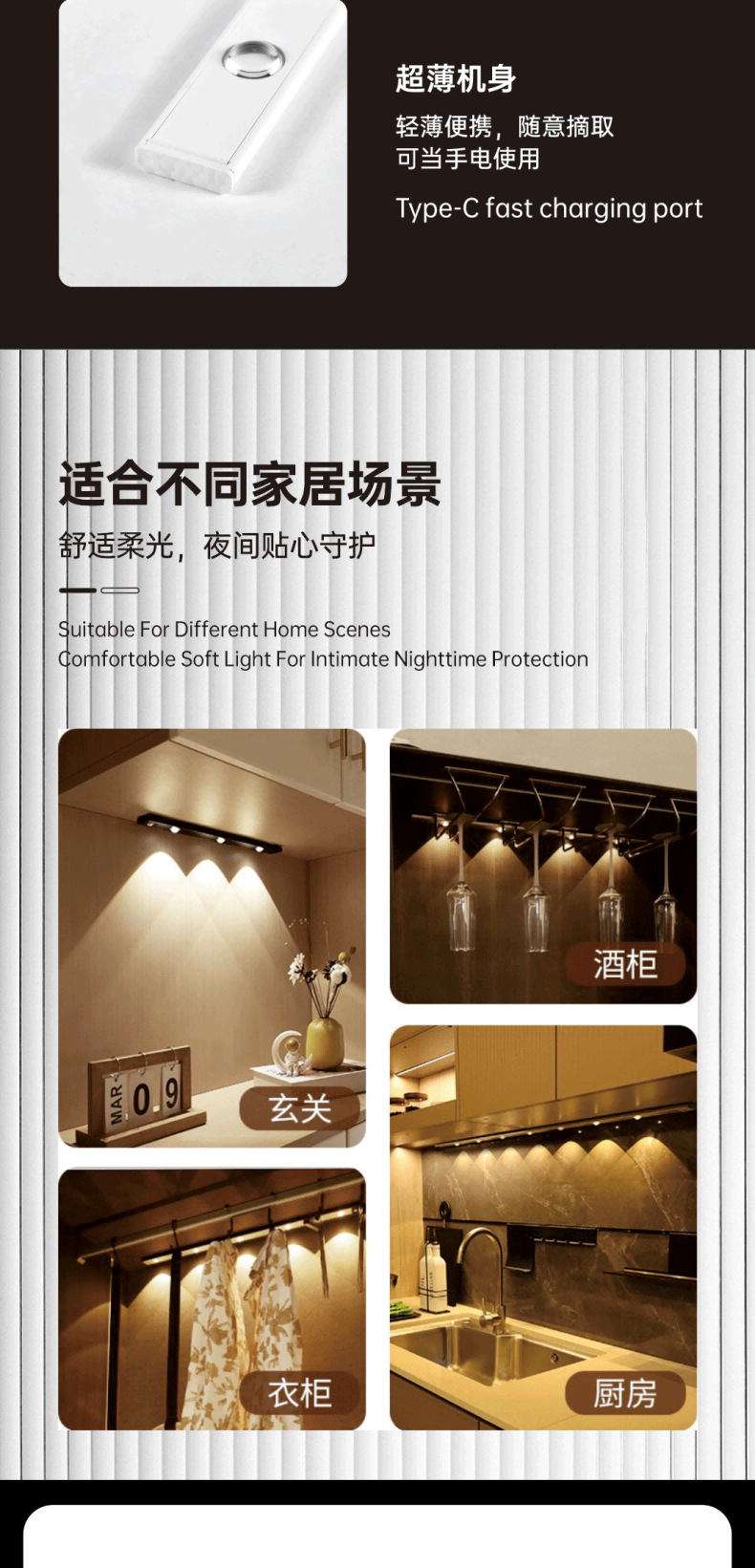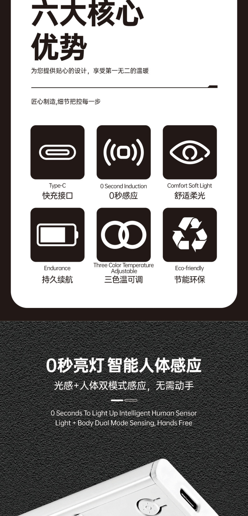 고양이 눈 센서등, 언덕등, 물결등, 충전식 조광 무단계 조광 캐비닛등, 센서등, 사람이 오면 켜짐