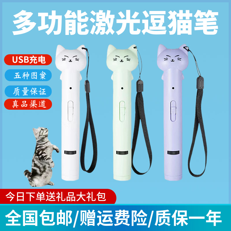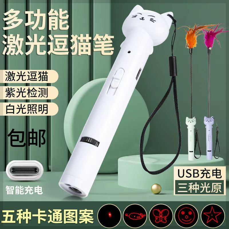 국경 간 애완 동물 제품 지루함 적외선 고양이 테이 펜 깃털 벨 레이저 라이트를 완화하는 멀티 패턴 레이저 고양이 테이 스틱