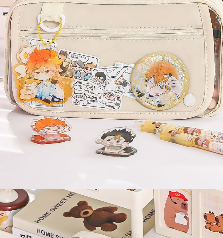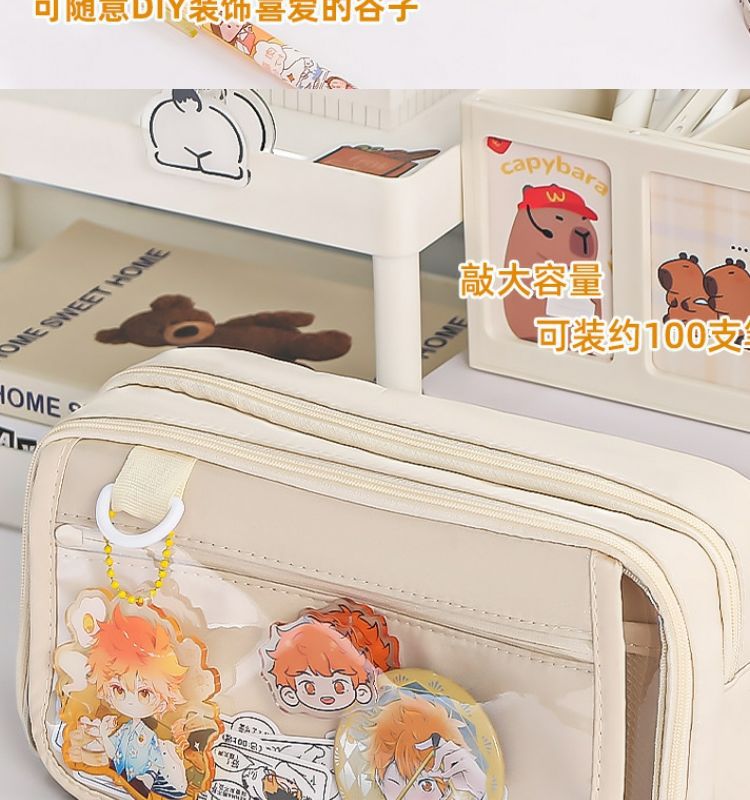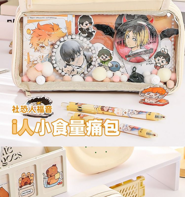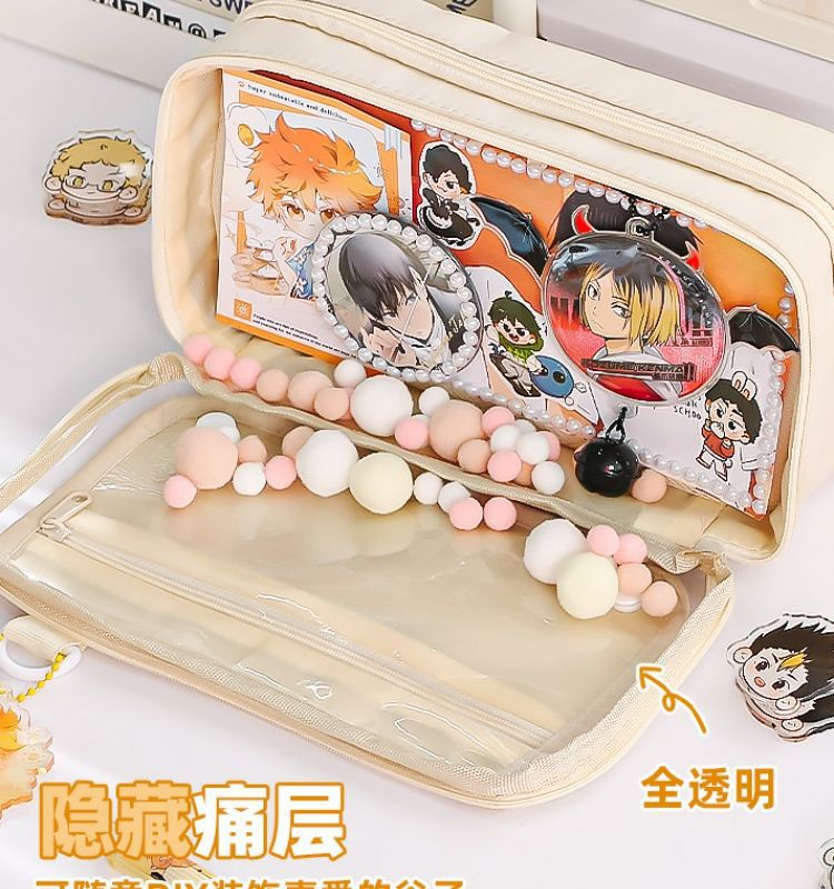 작은 음식 다기능 통증 가방 투명한 연필 가방 대용량 저장 가방 소셜 연필 케이스 숨겨진 통증 층 연필 케이스