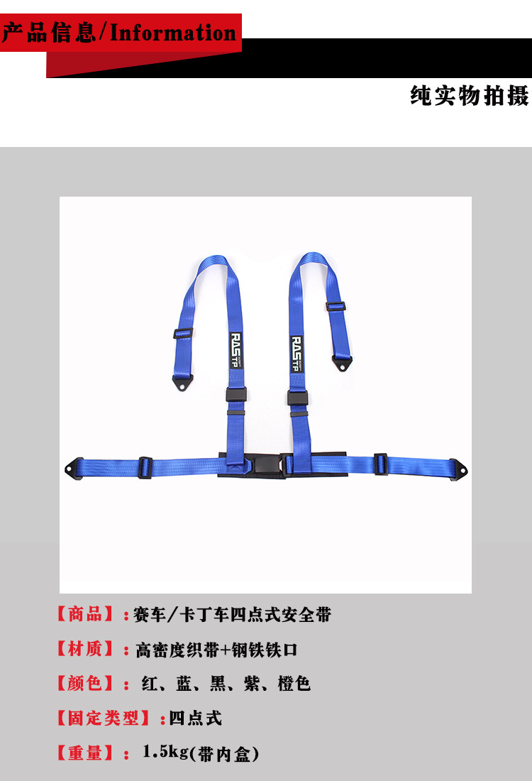 【用途】:卡丁车座椅,赛车座椅改装,有效固定乘员身体,有效保护驾驶者和领航员安全