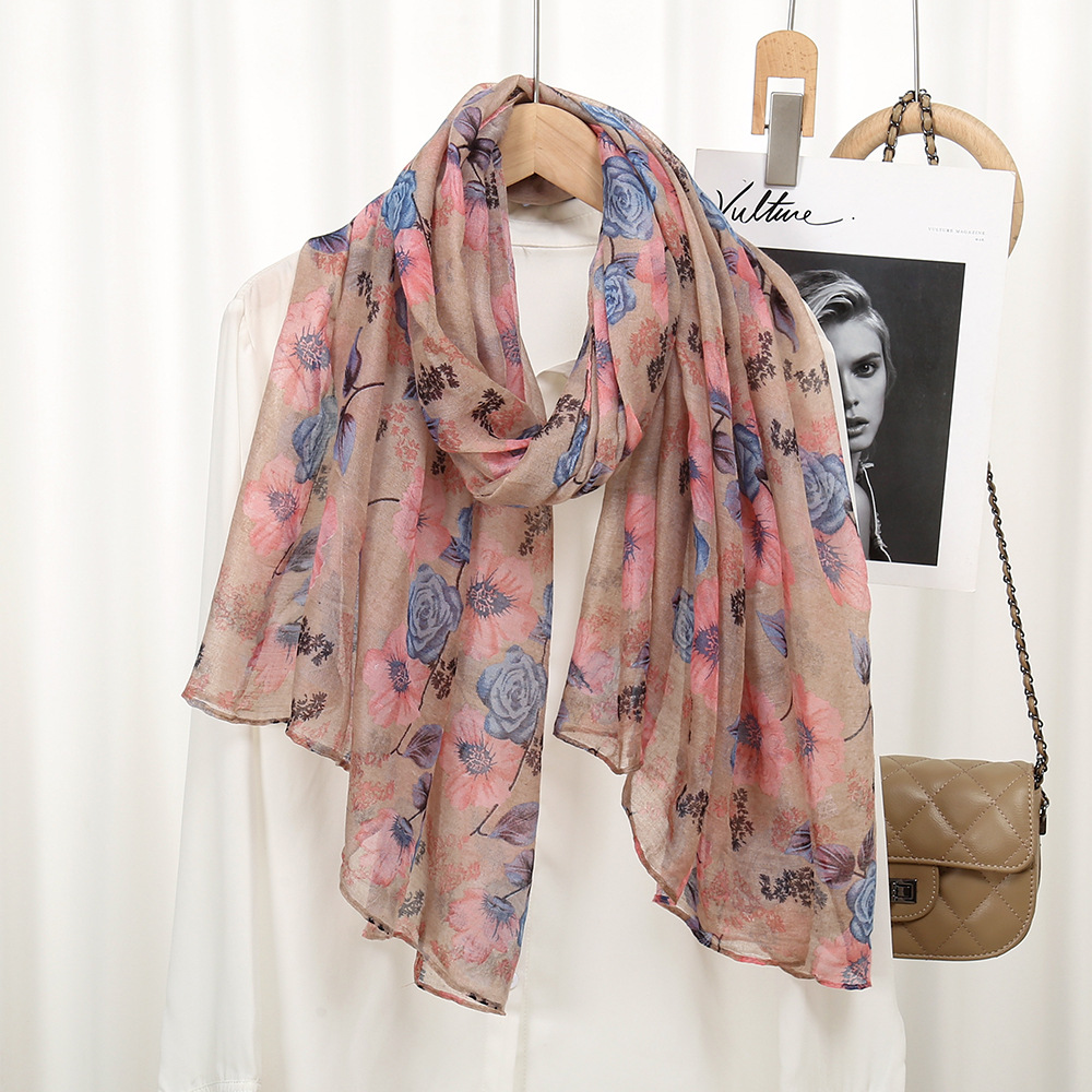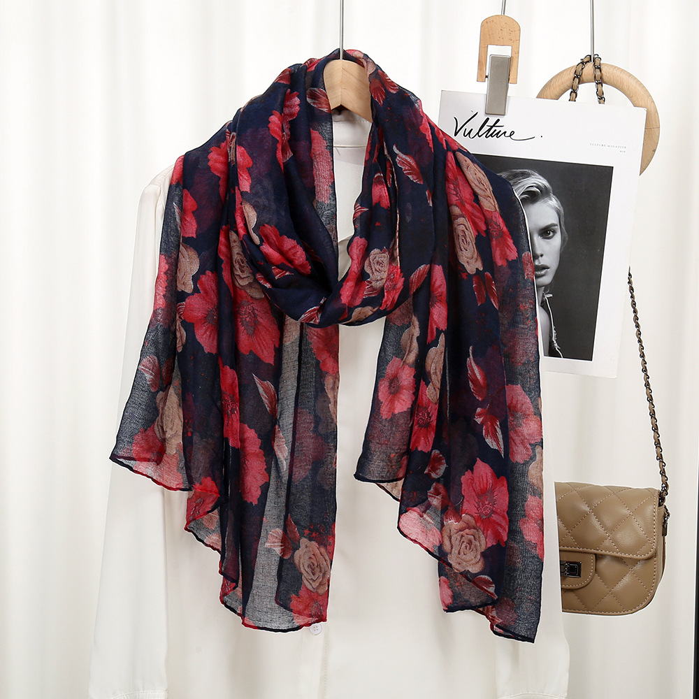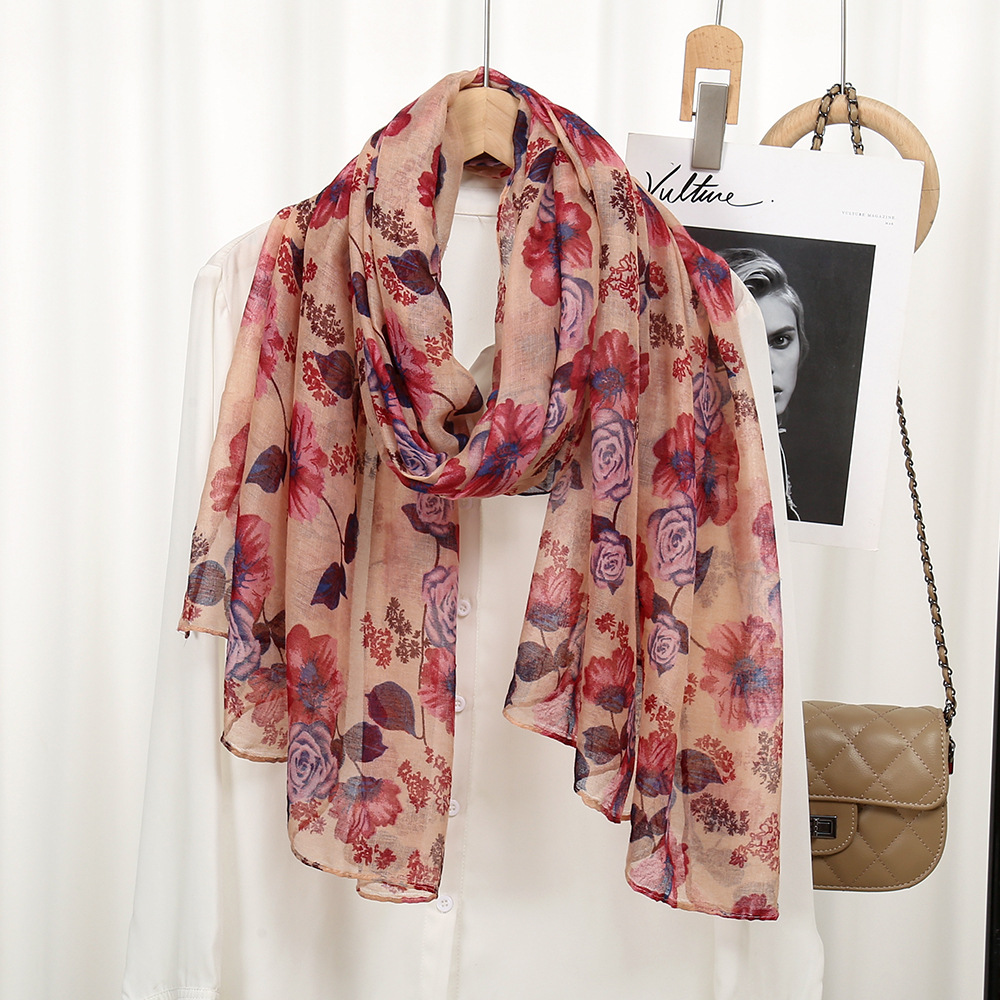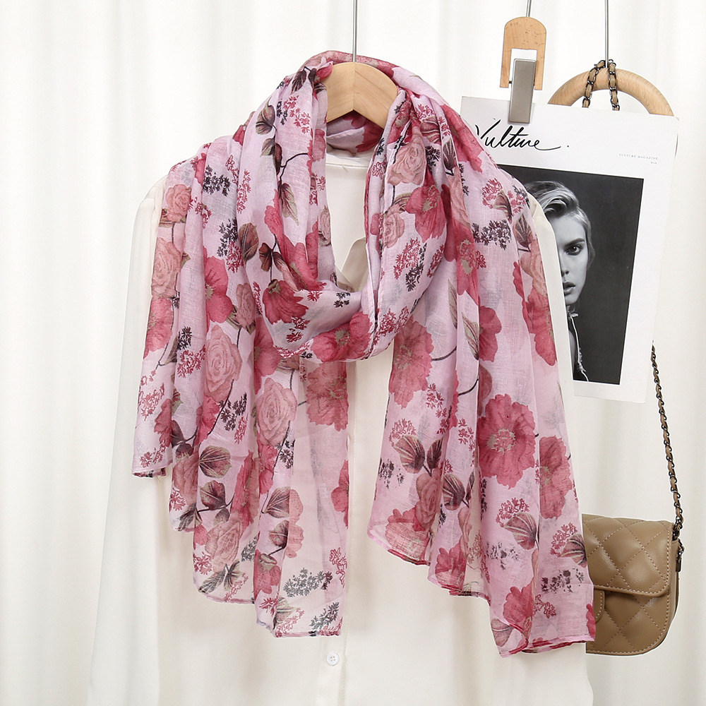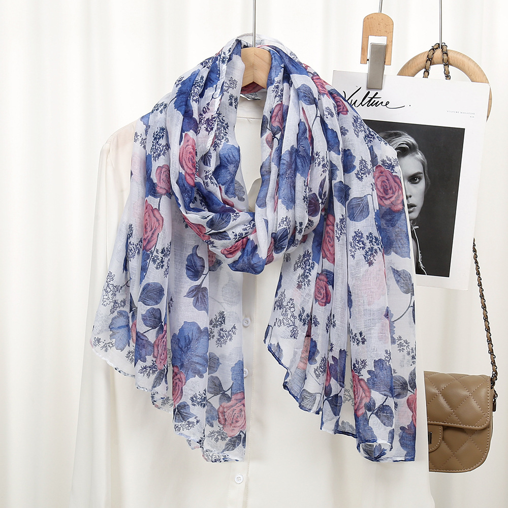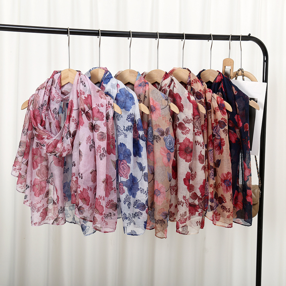 발리 원사 꽃 인쇄 스카프 여성의 봄과 여름 새로운 긴 스카프 무슬림 터번 얇은 자외선 차단제 목도리 재고스토어 가기