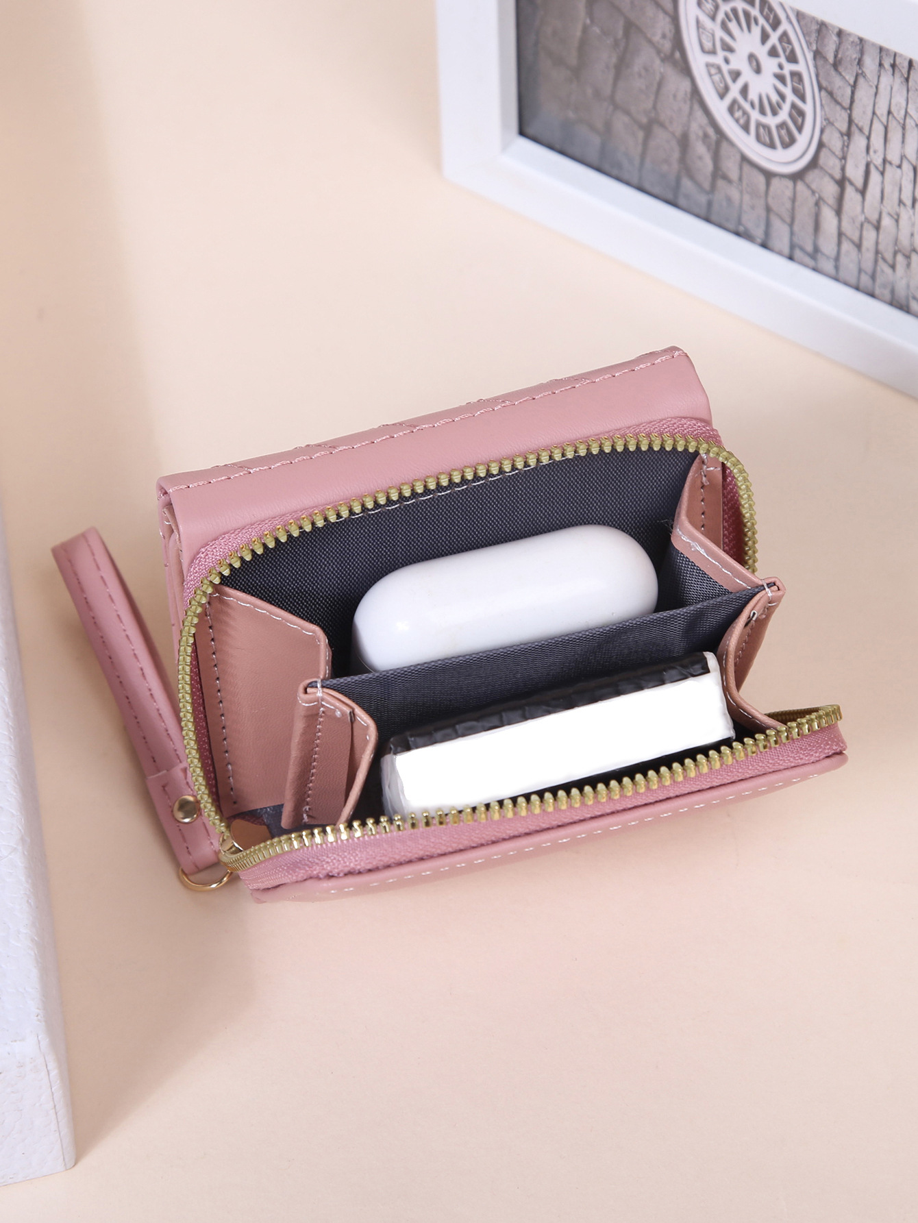 패션 수 놓은 하트 모양의 트라이 폴드 멀티 카드 위치 리어 체인 여성의 어스 지갑