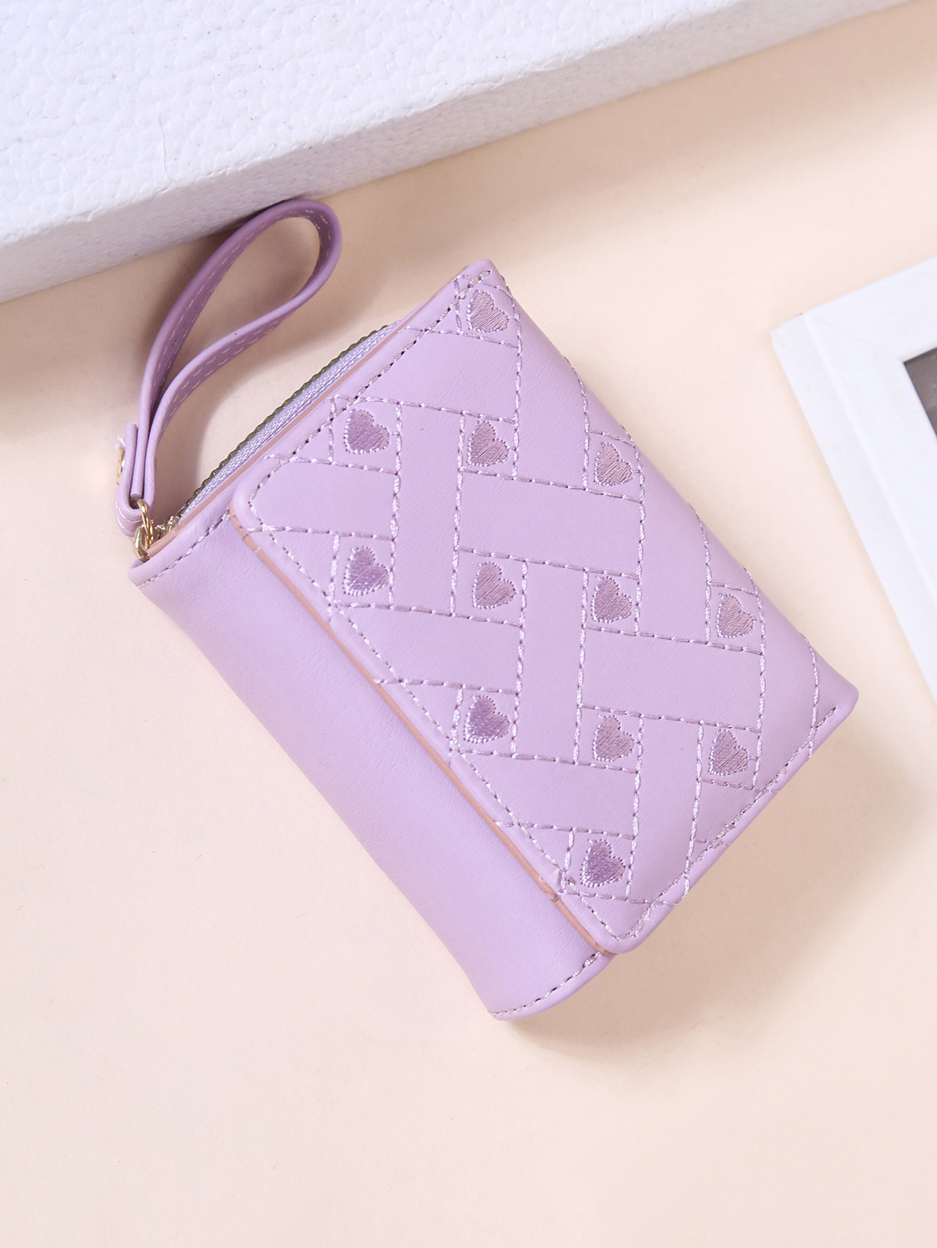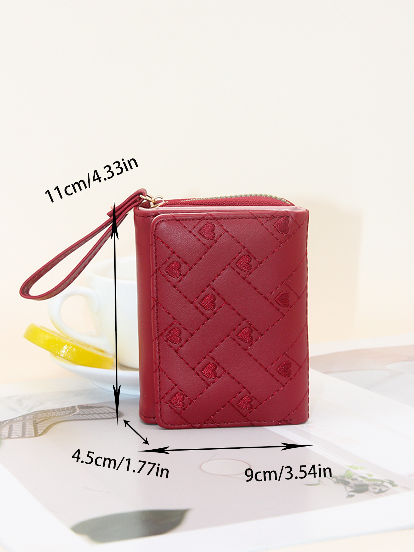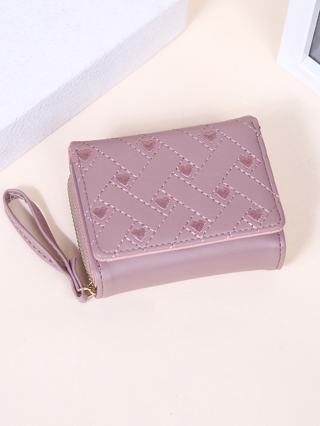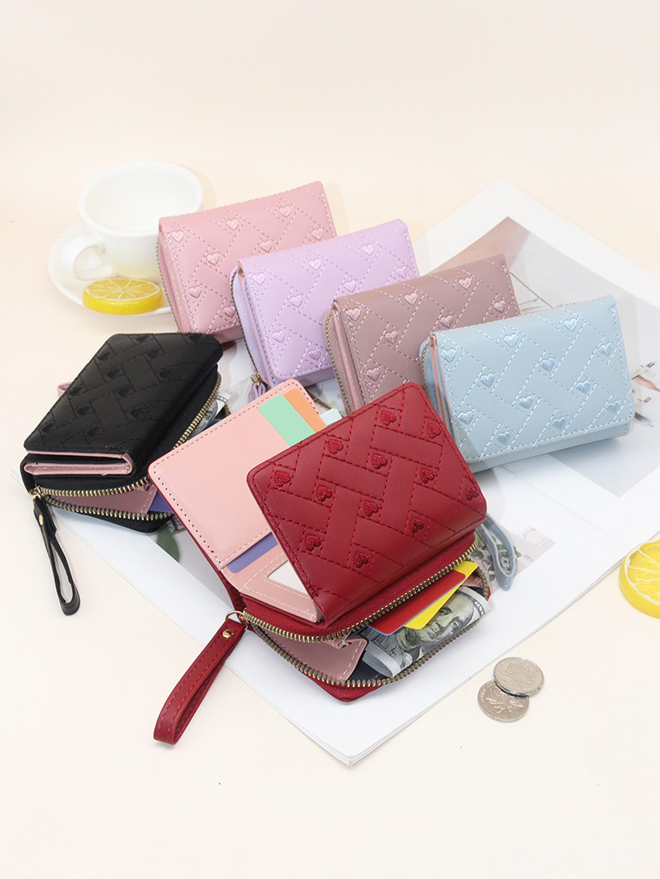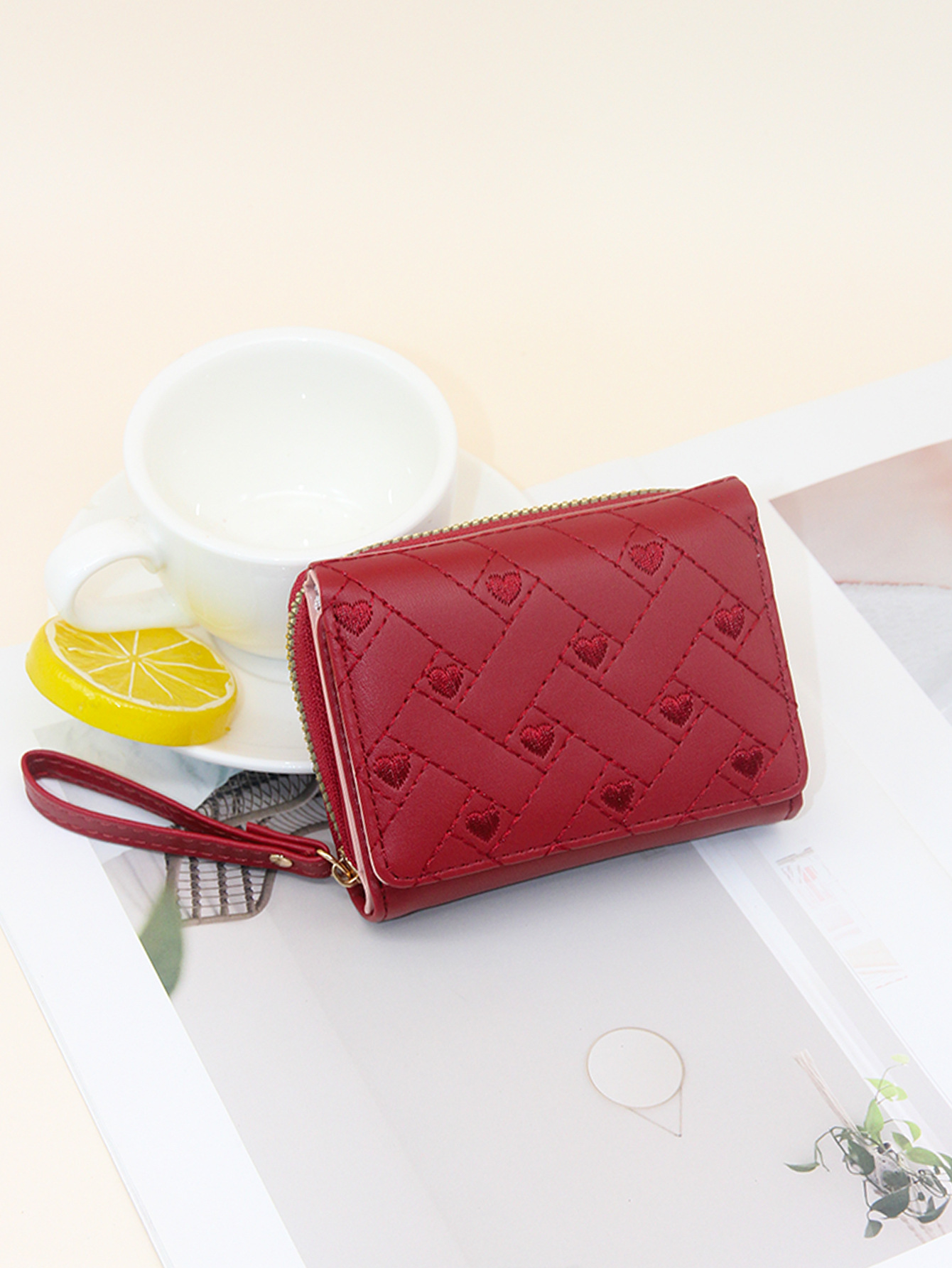 패션 수 놓은 하트 모양의 트라이 폴드 멀티 카드 위치 리어 체인 여성의 어스 지갑스토어 가기