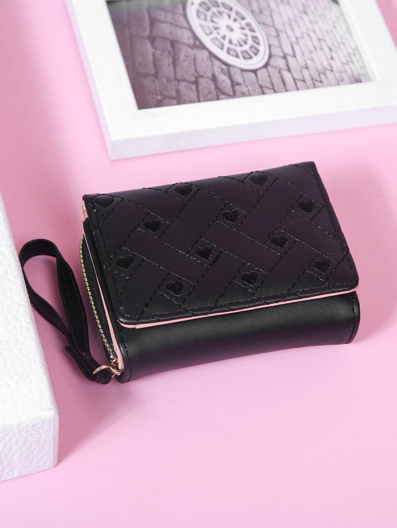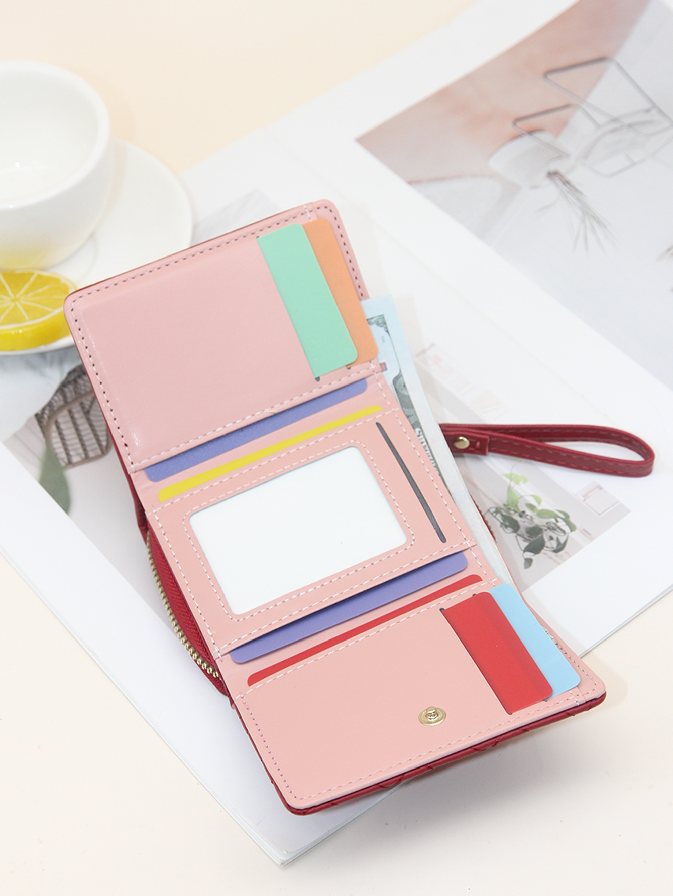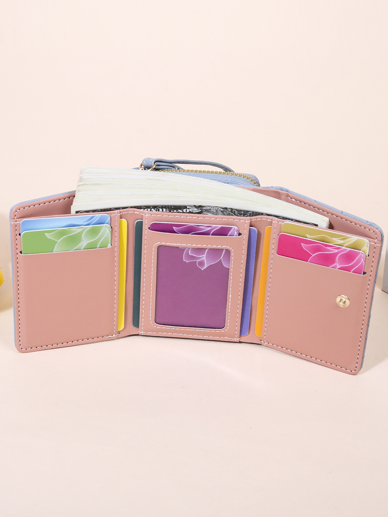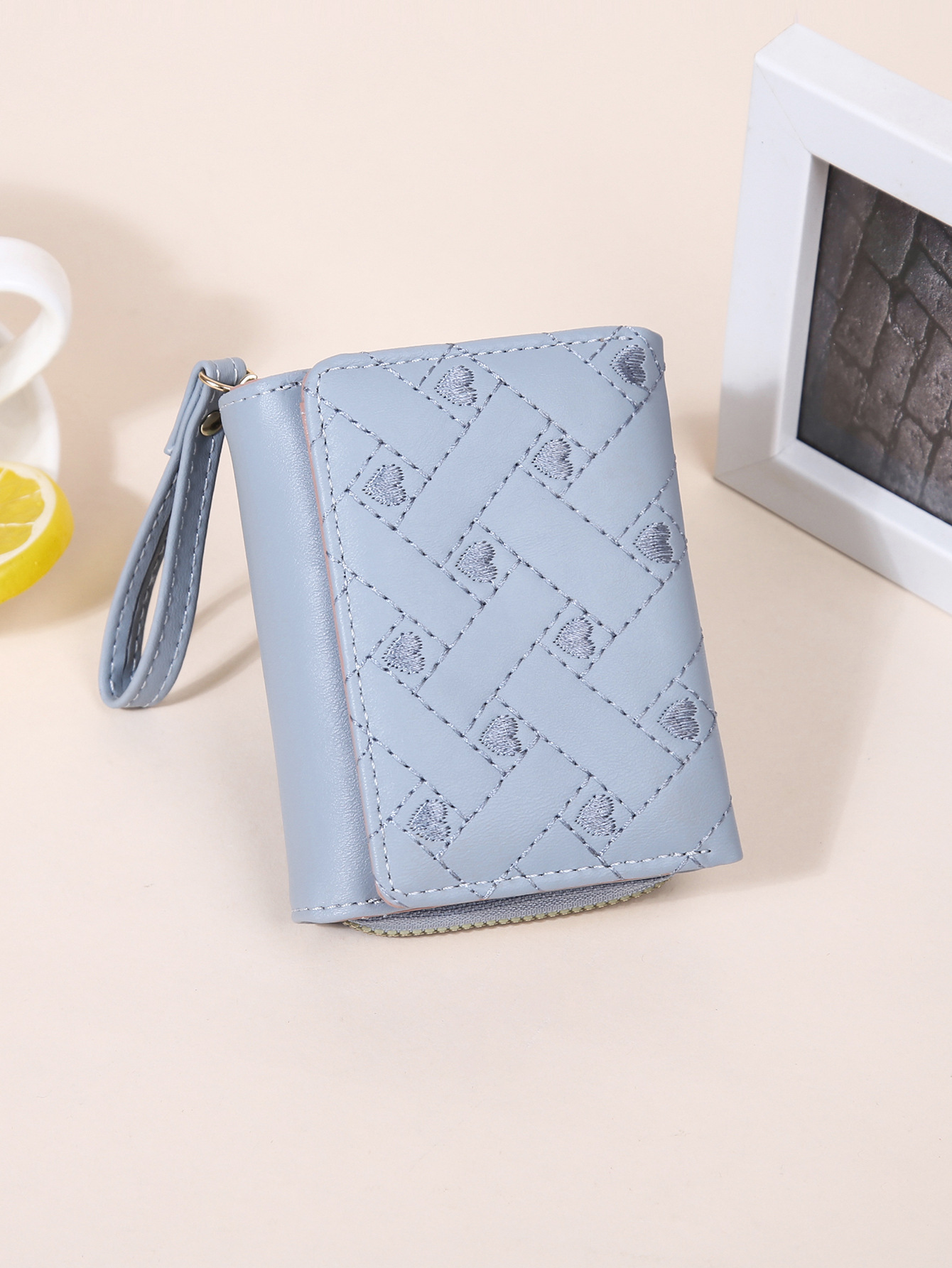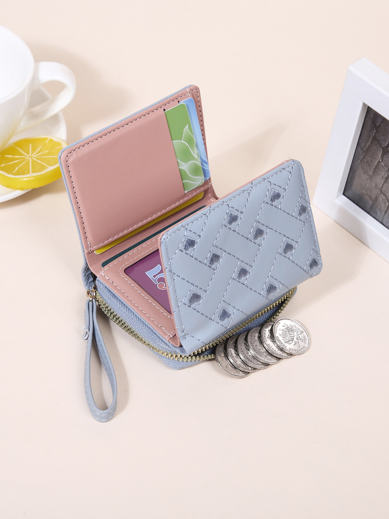 패션 수 놓은 하트 모양의 트라이 폴드 멀티 카드 위치 리어 체인 여성의 어스 지갑스토어 가기