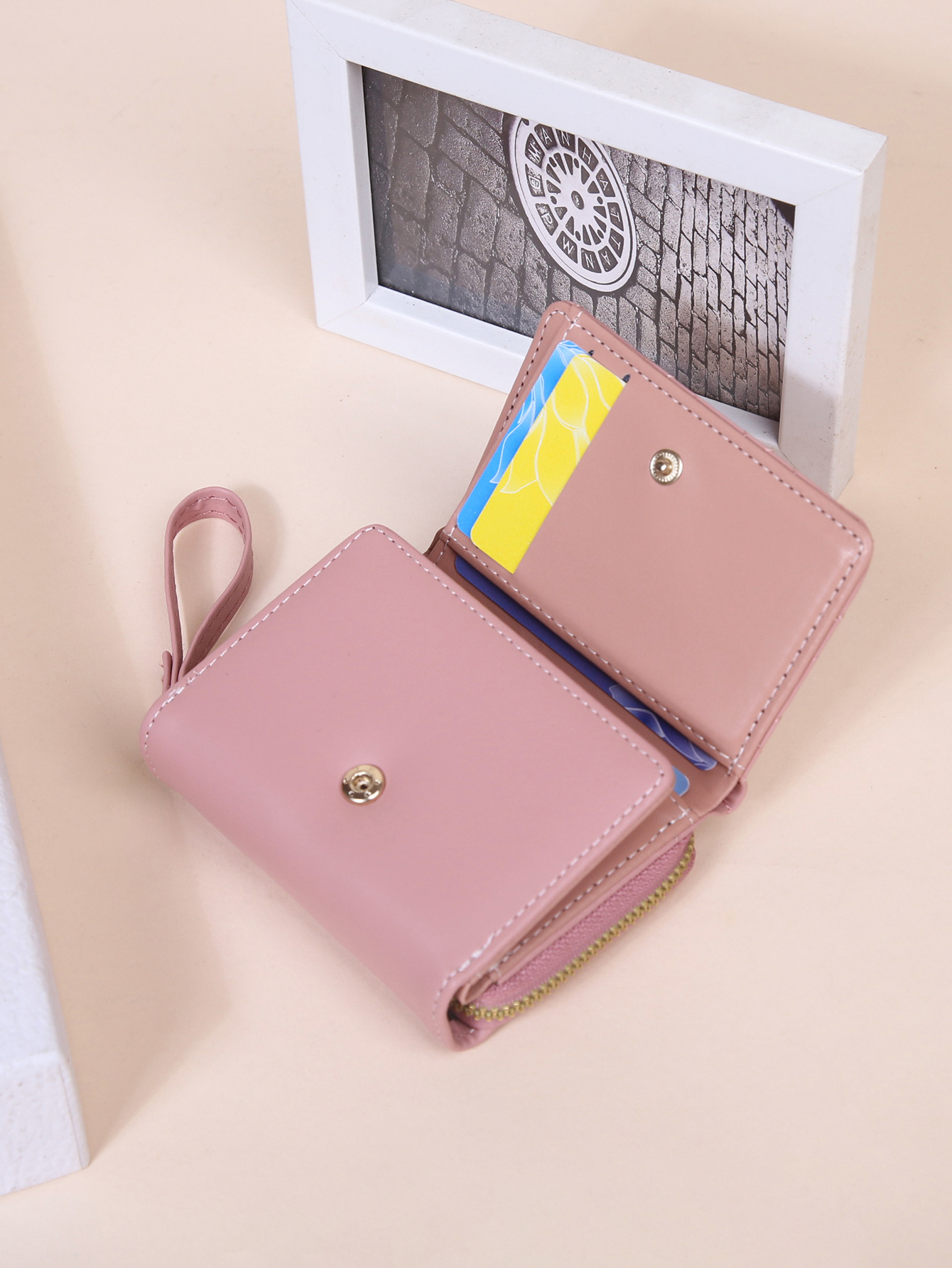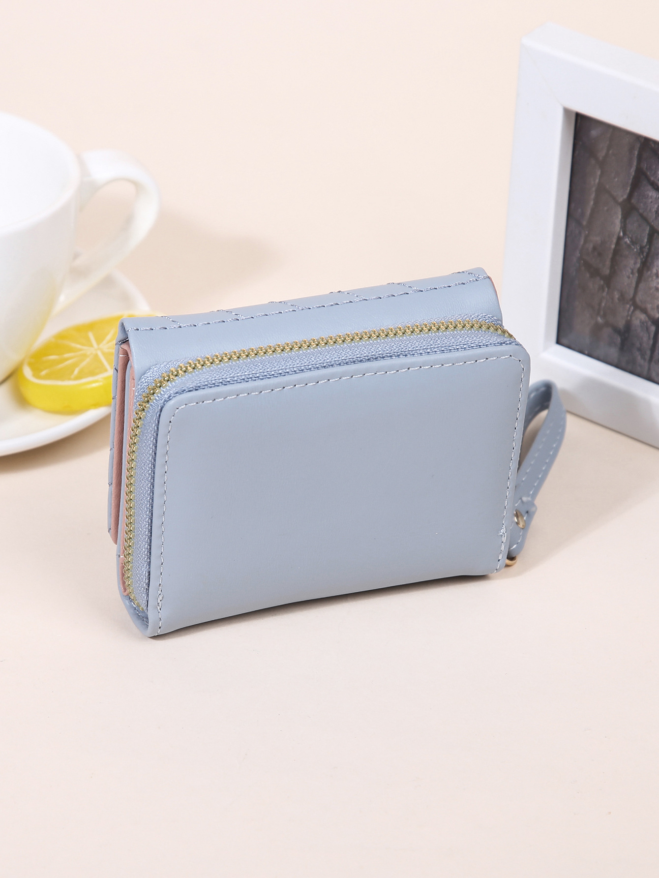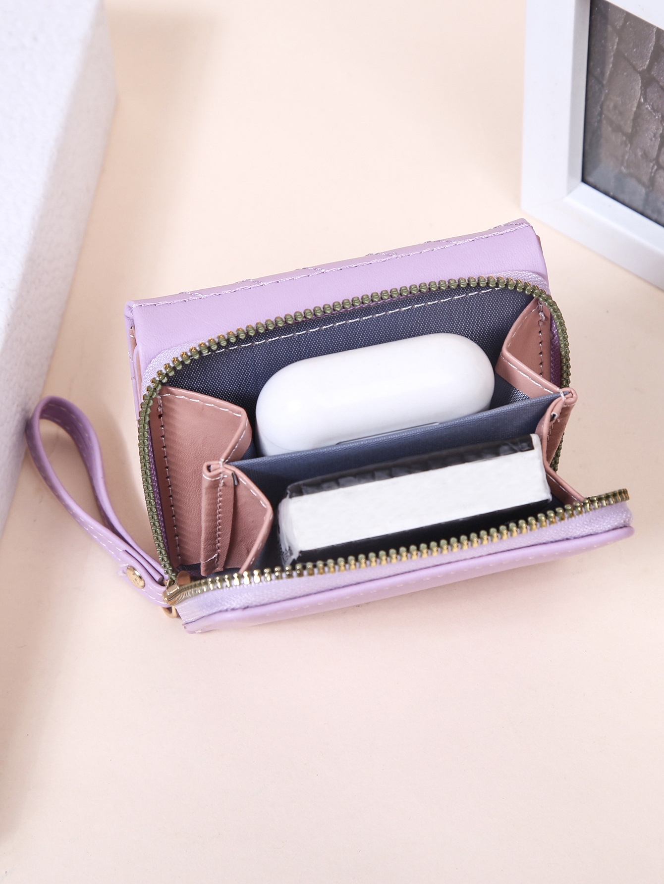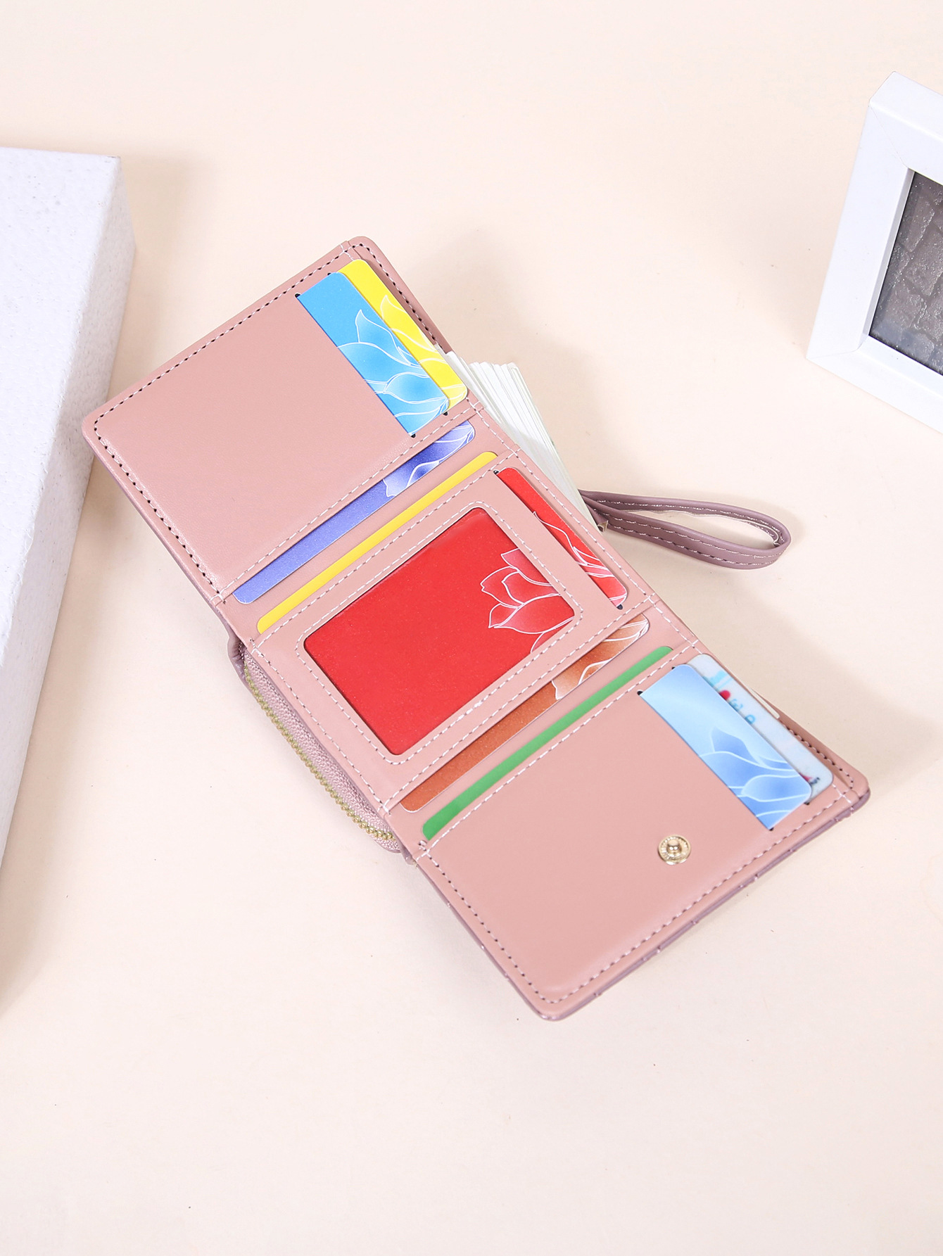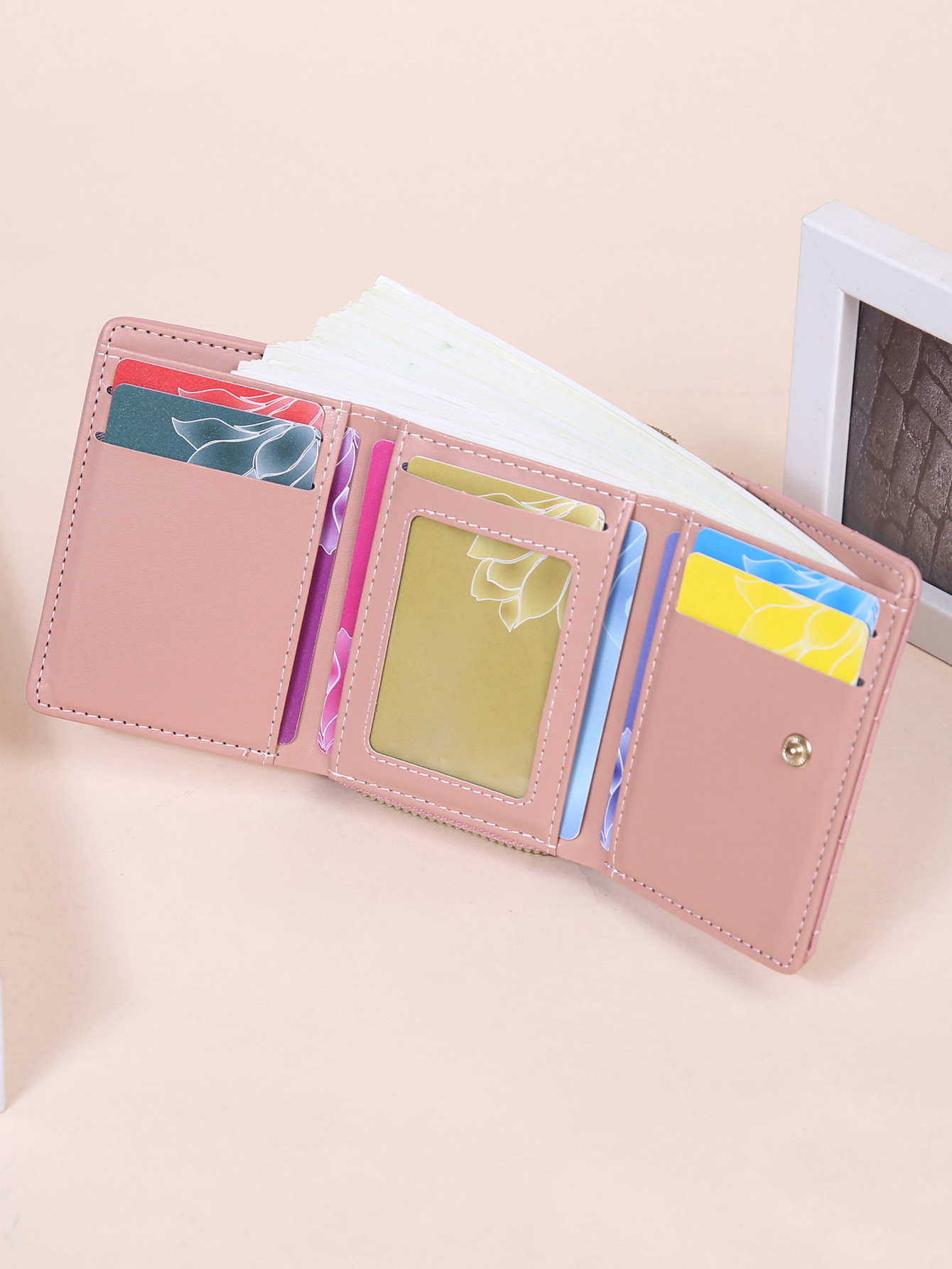 패션 수 놓은 하트 모양의 트라이 폴드 멀티 카드 위치 리어 체인 여성의 어스 지갑스토어 가기