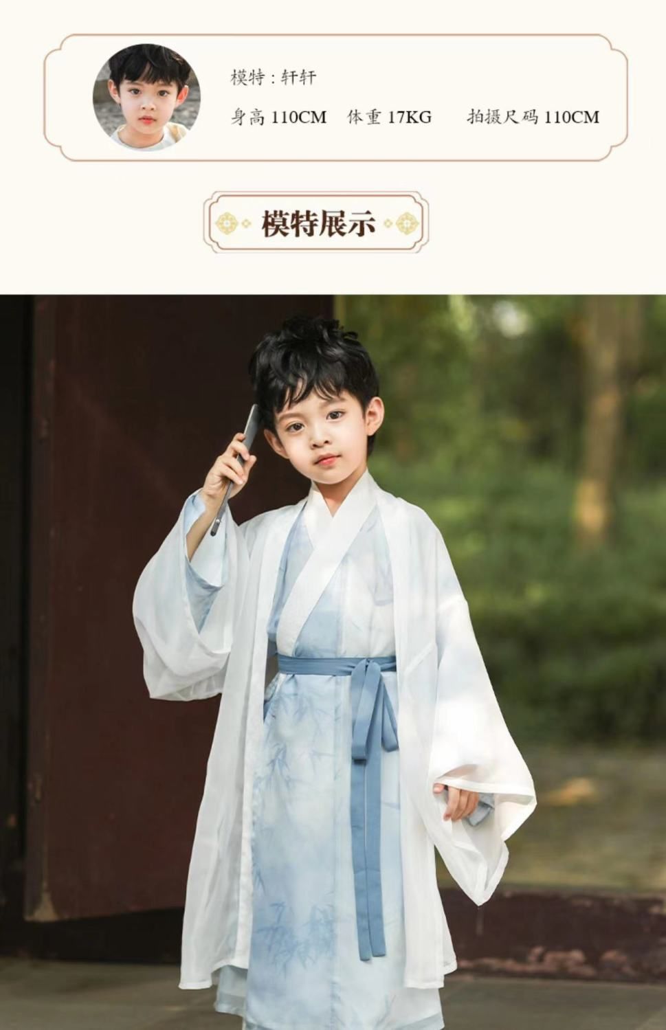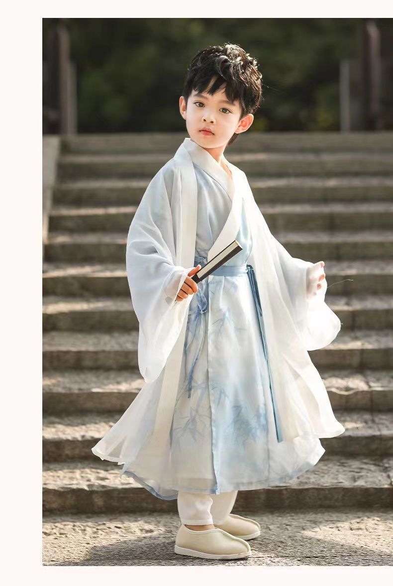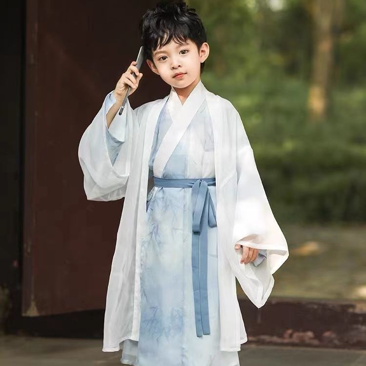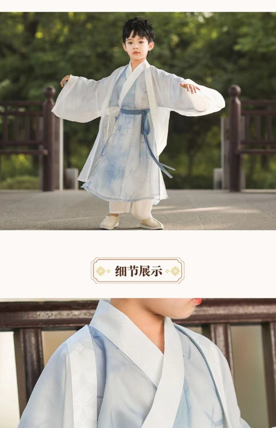 한푸 소년 여름과 가을 중국 스타일 고대 스타일 긴 셔츠 원피스 어린이 탕 세트 어린 소년의 고대 원피스 축제 공연 원피스 중국 스타일