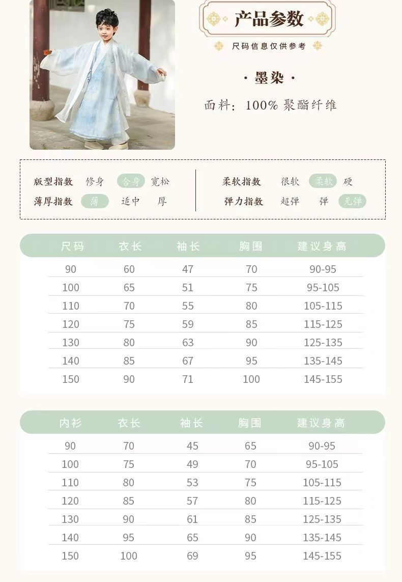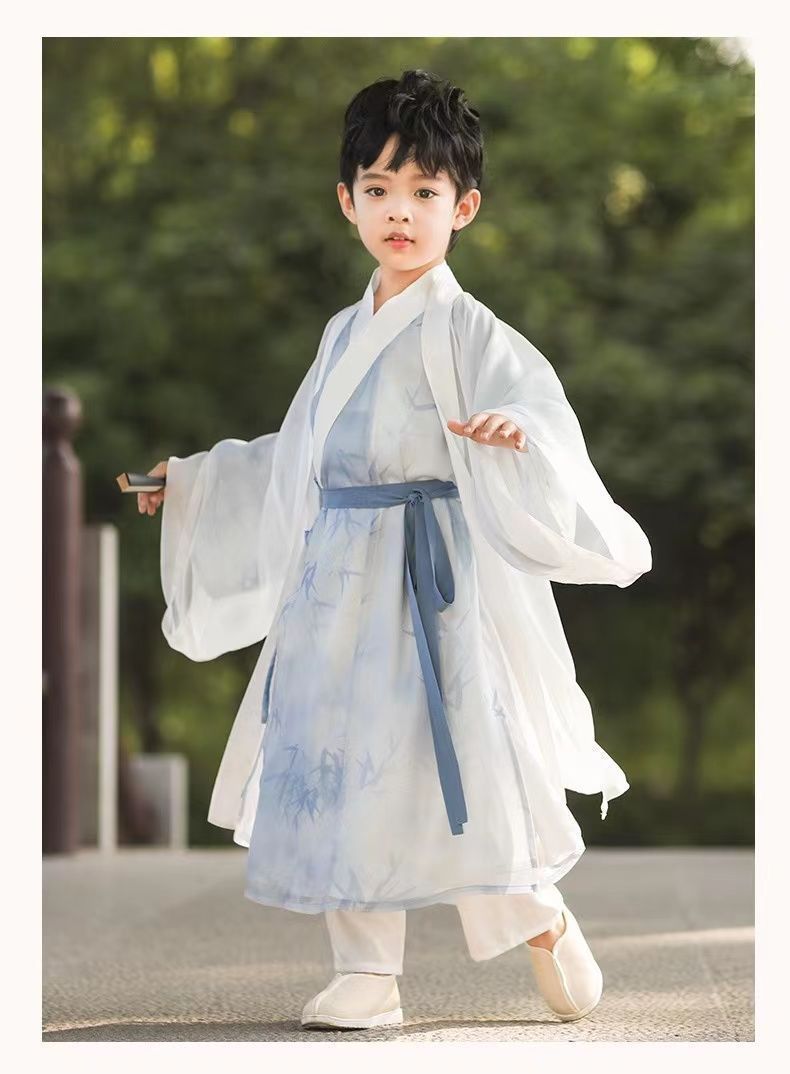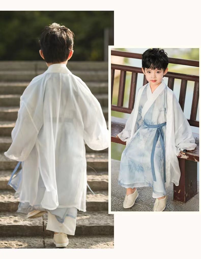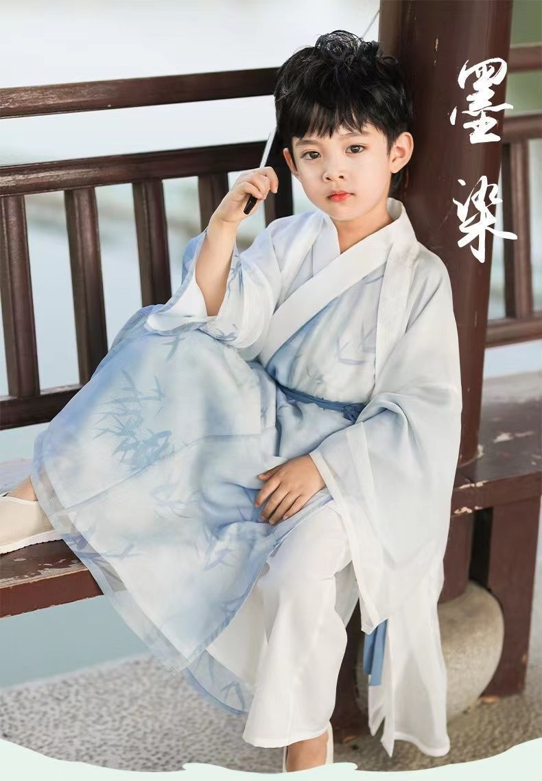 한푸 소년 여름과 가을 중국 스타일 고대 스타일 긴 셔츠 원피스 어린이 탕 세트 어린 소년의 고대 원피스 축제 공연 원피스 중국 스타일