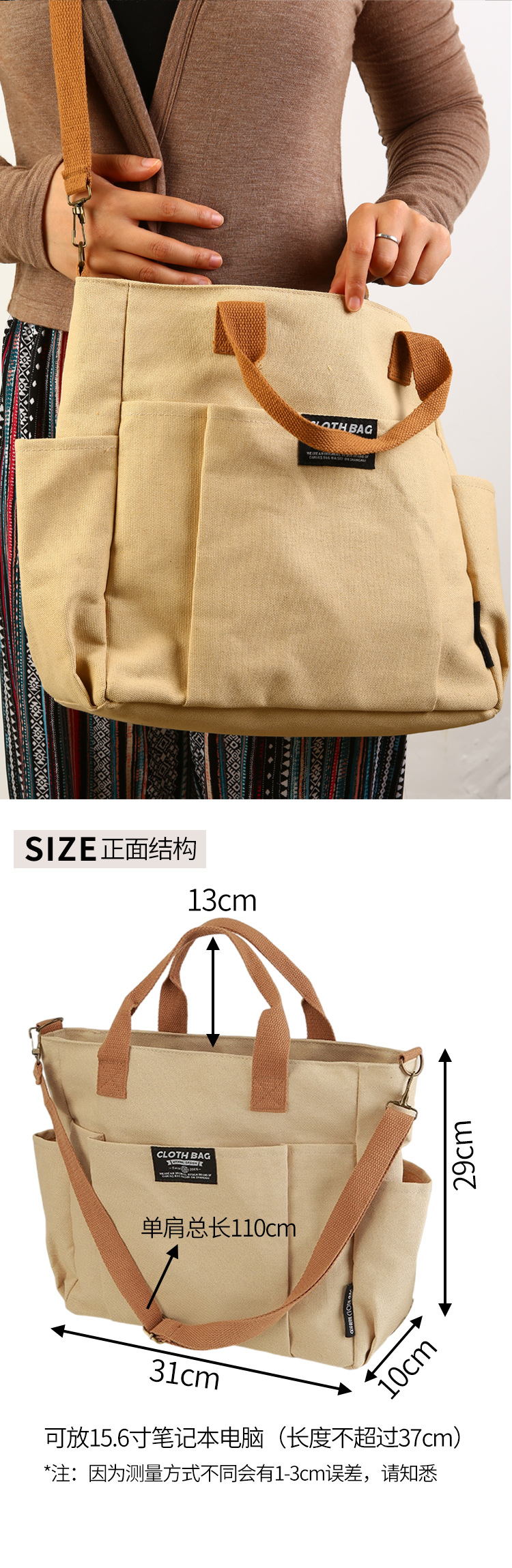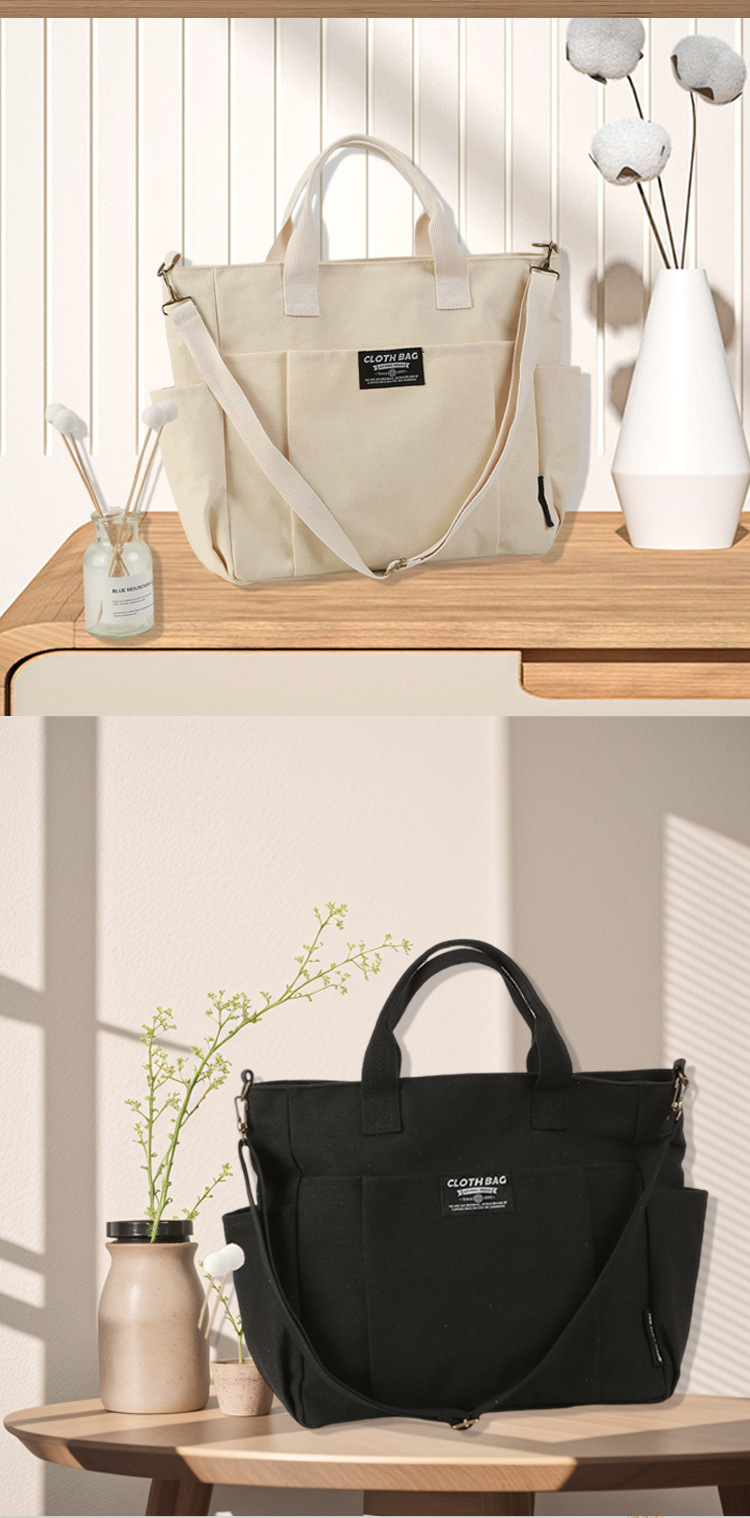 토트 캔버스 가방 두꺼운 멀티 포켓 일본 스타일 캐주얼 학생 컴퓨터 간단한 휴대용 어깨 크로스 바디 Schoolbag Satchel