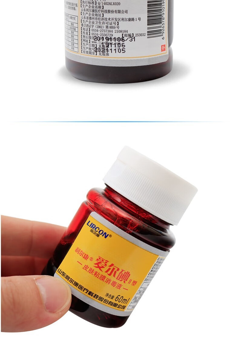 Liercon 요오드 피부 소독제 피부 점막 상처 유아 Navel 소독제