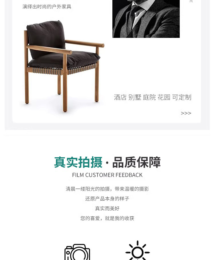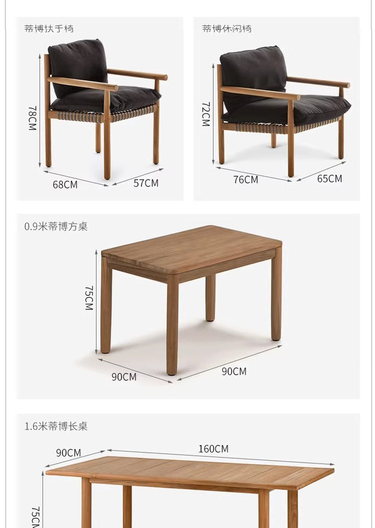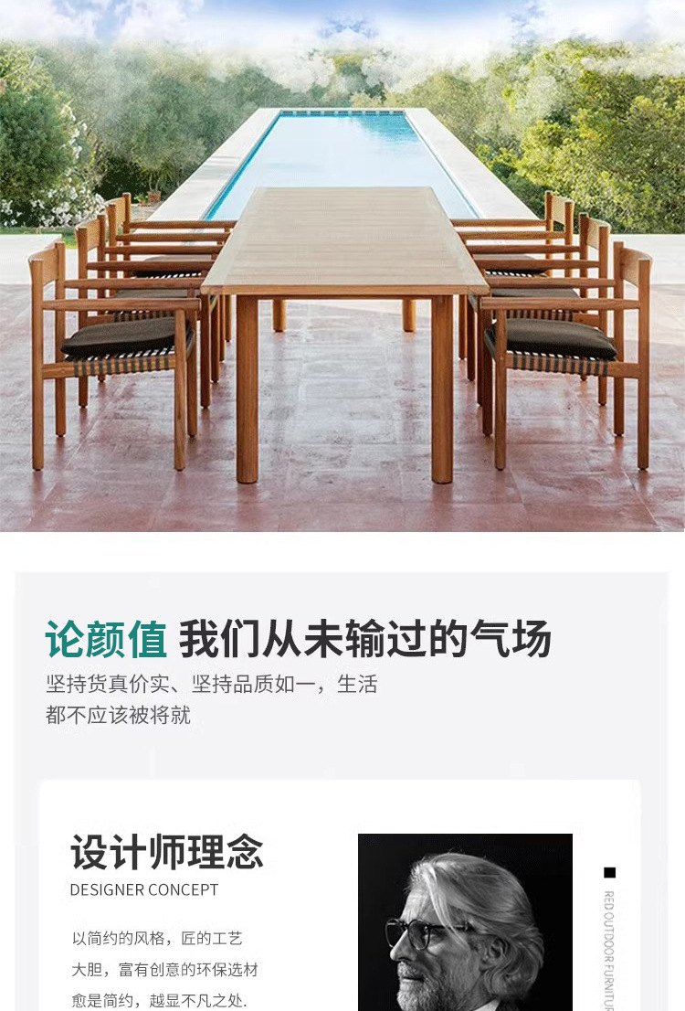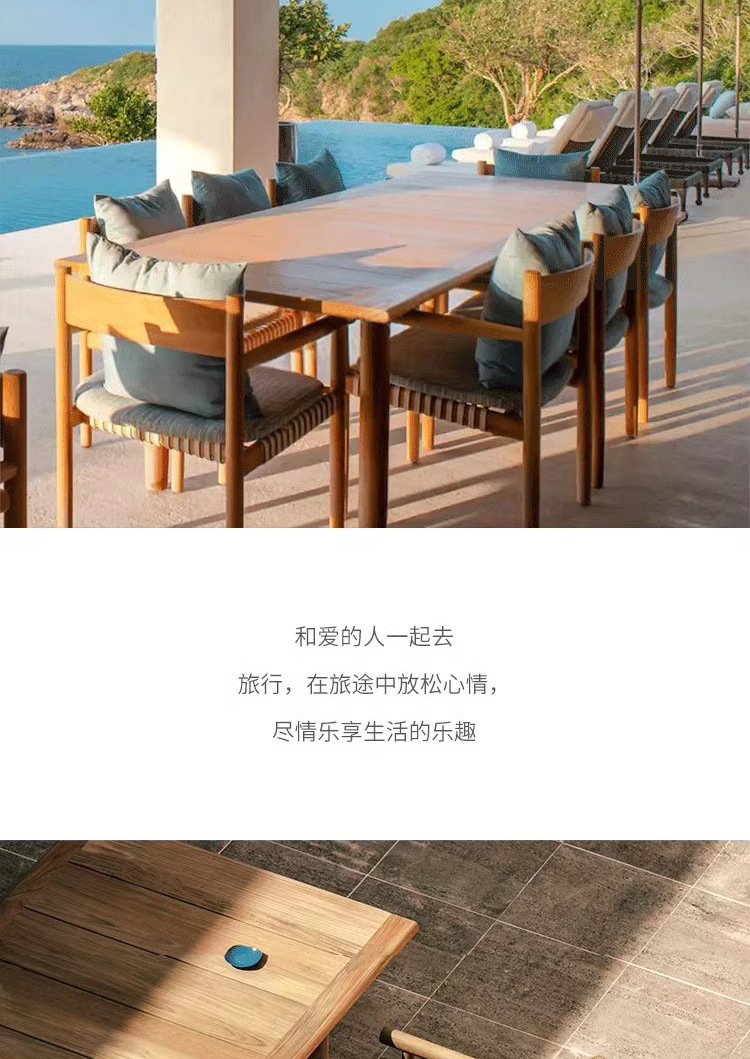 户外柚木桌椅高端庭院别墅酒店露台客厅餐桌家具防水防腐北欧风格