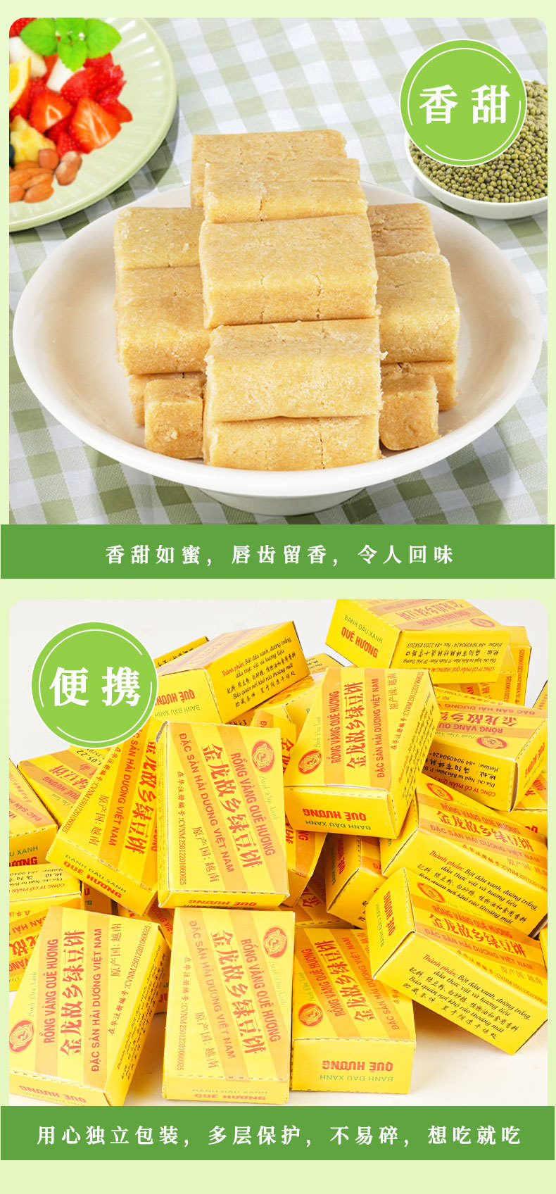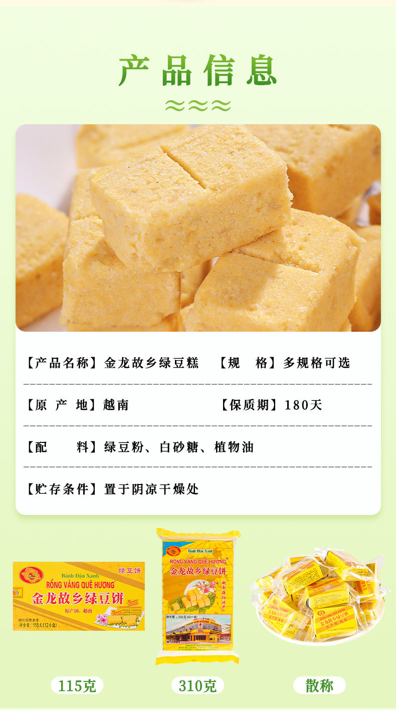 베트남 수입 진롱 고향 녹두 케이크 115g 패스트리 하트 정통 전문 간식 구식 패스트리 도매스토어 가기
