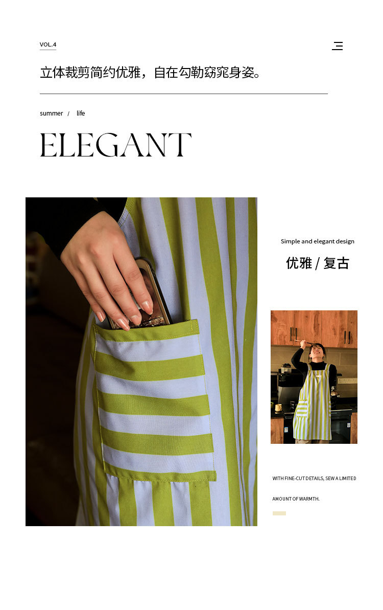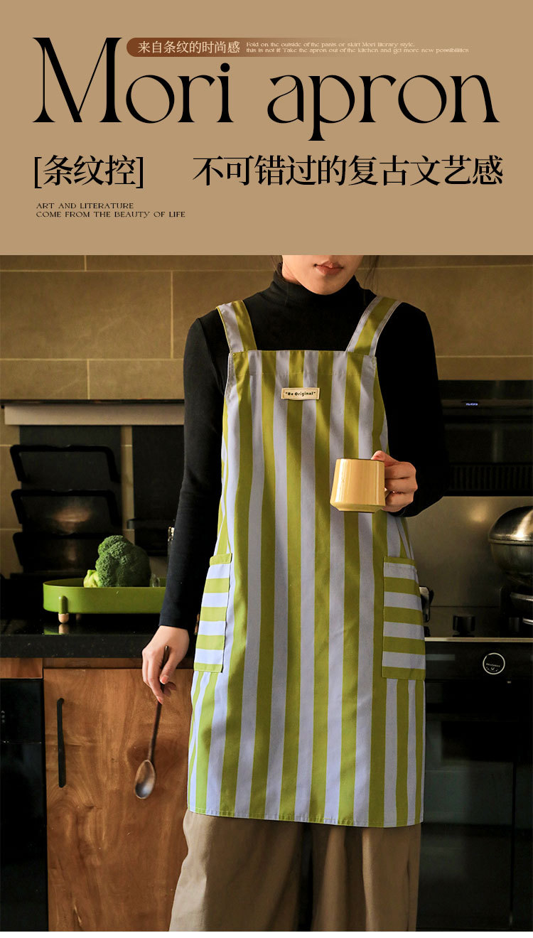 공장 도매 레트로 스트라이프 앞치마 여름용 가볍고 통기성 좋은 주방 방수 방유 방오 고급 앞치마스토어 가기
