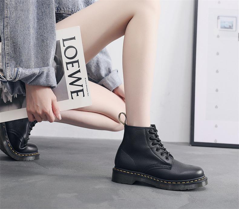 리치 패턴 101 마틴 부츠 여성 6 홀 탑 레이어 소프트 Cowhide 커플 발목 부츠 영국 스타일 정품 가죽 오토바이 부츠 라운드 발가락스토어 가기