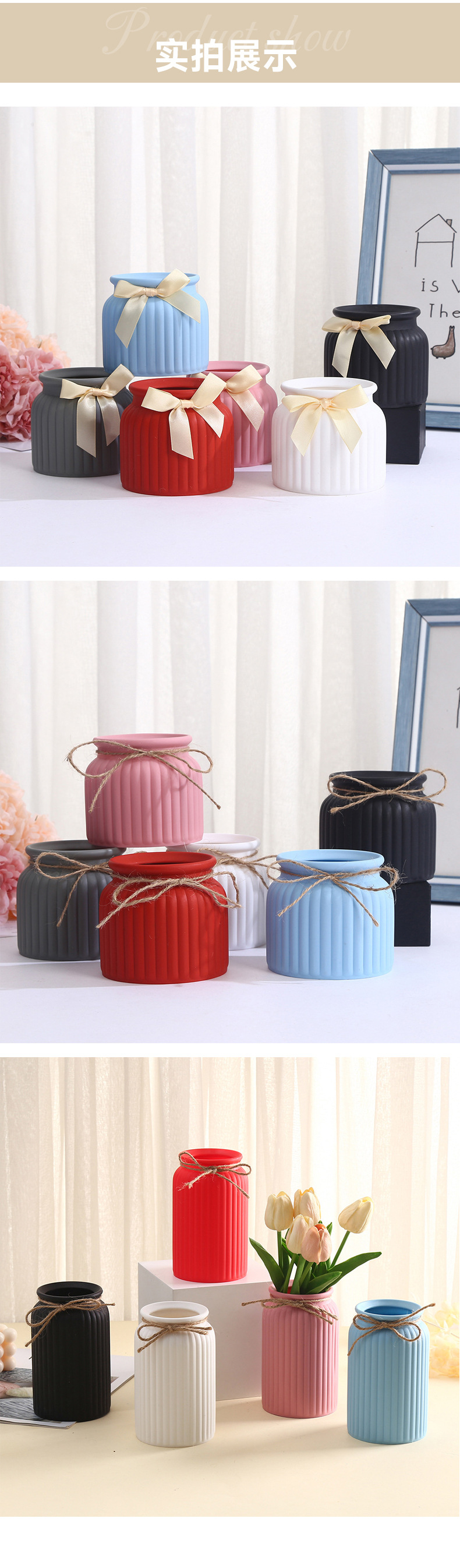 북유럽 스타일의 창조적 인 줄무늬 모조 세라믹 꽃 냄비 다채로운 플라스틱 다육 꽃 냄비 실내 데스크탑 장식 꽃병 장식품스토어 가기
