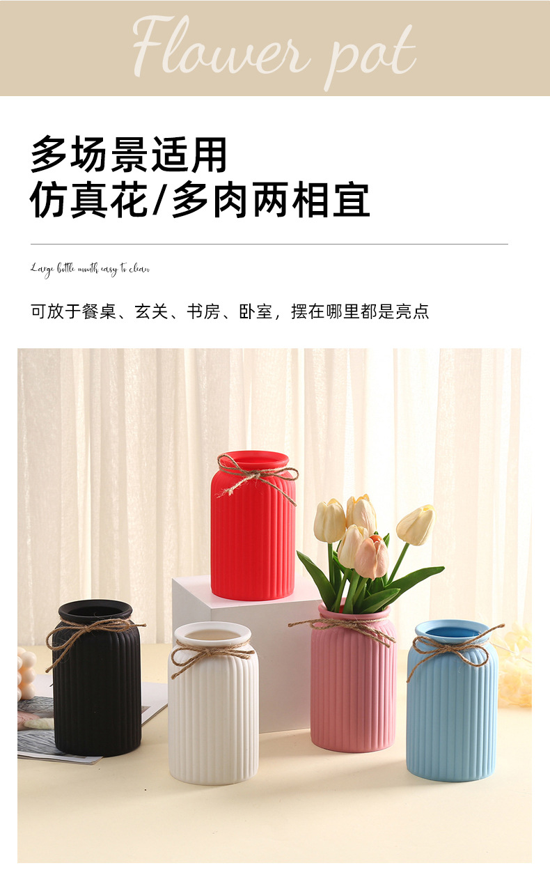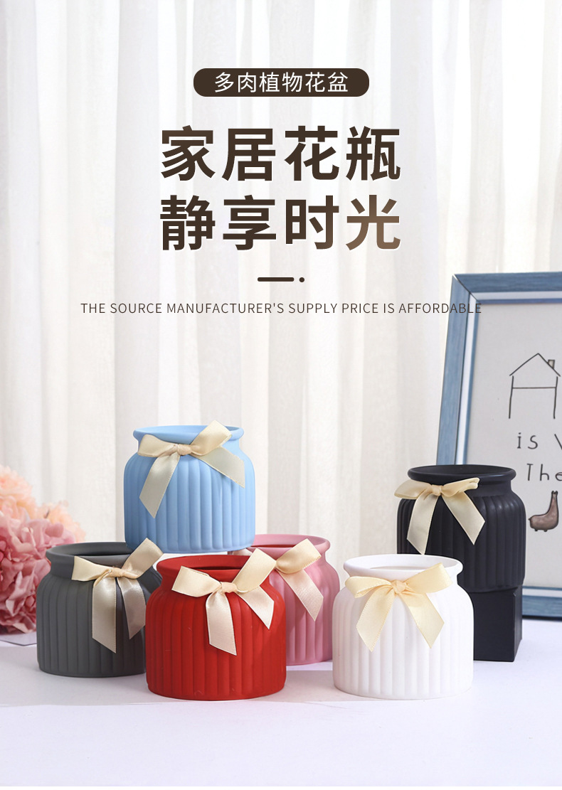북유럽 스타일의 창조적 인 줄무늬 모조 세라믹 꽃 냄비 다채로운 플라스틱 다육 꽃 냄비 실내 데스크탑 장식 꽃병 장식품