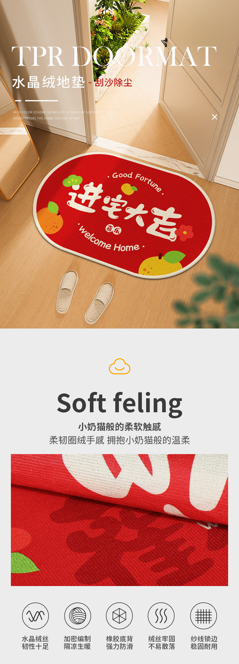 • [운이 좋은 내 집-녹색] 매트 (크리스탈 벨벳: 50*80cm)