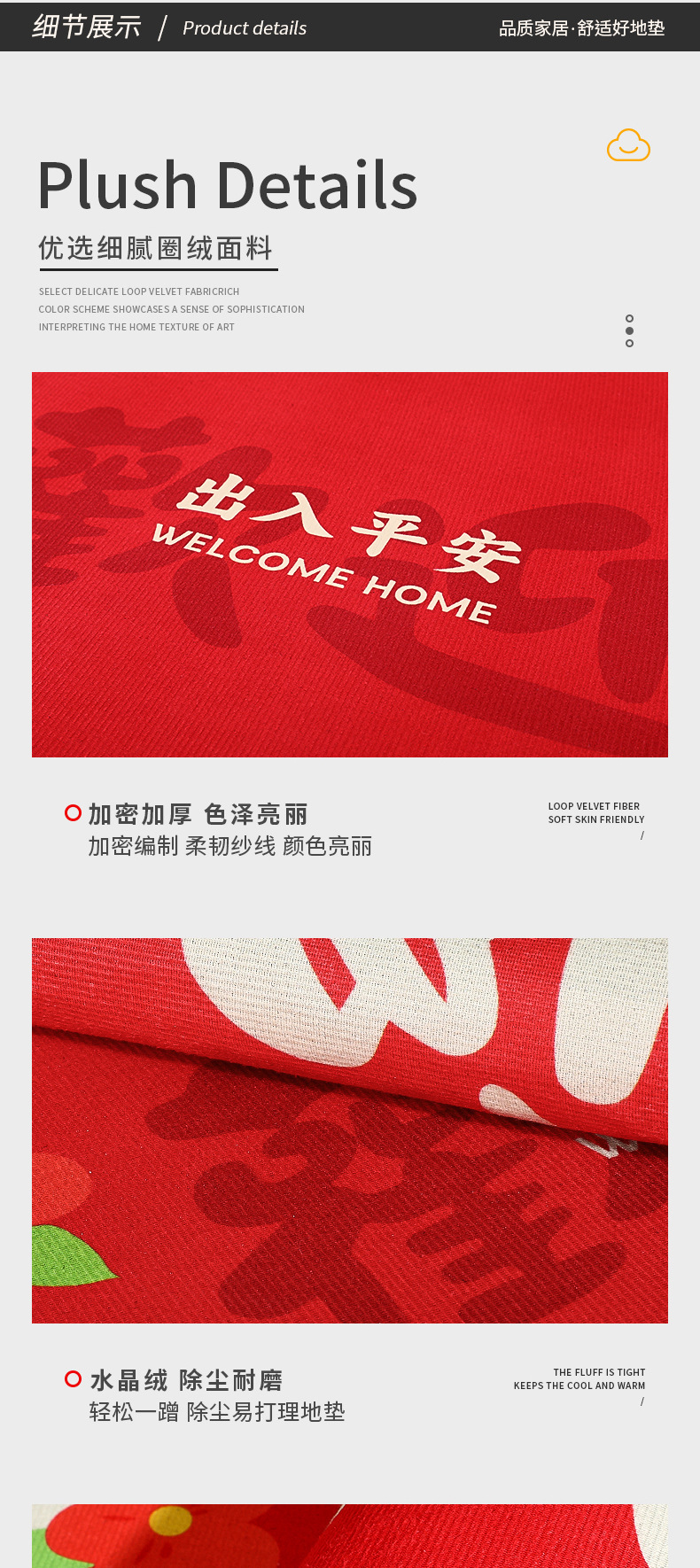 • [운이 좋은 내 집에-레드] 매트 (크리스탈 벨벳: 50*80cm)
