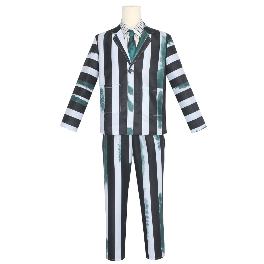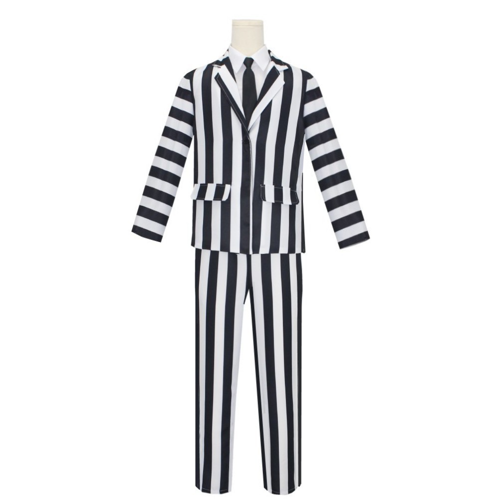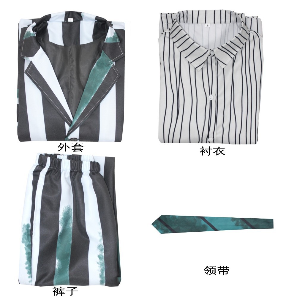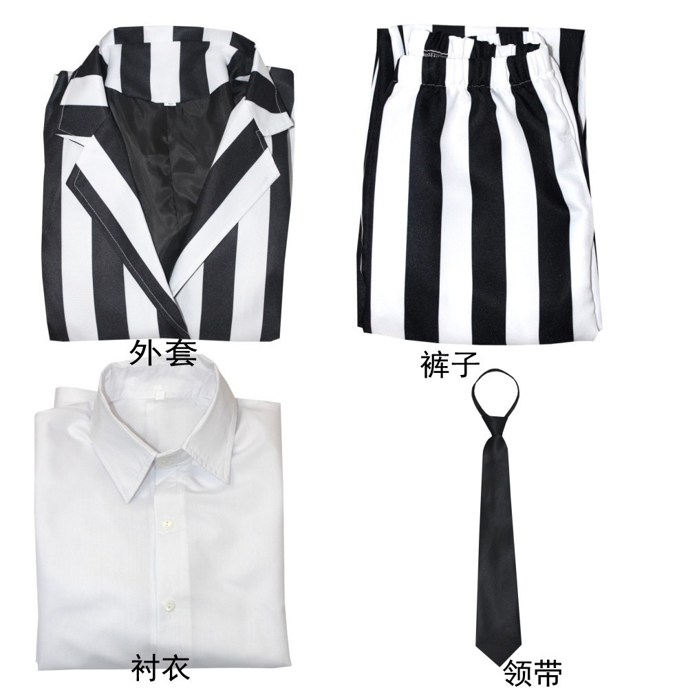 • 안감이 없는 흑백 스트라이프 (재킷+바지+넥타이)