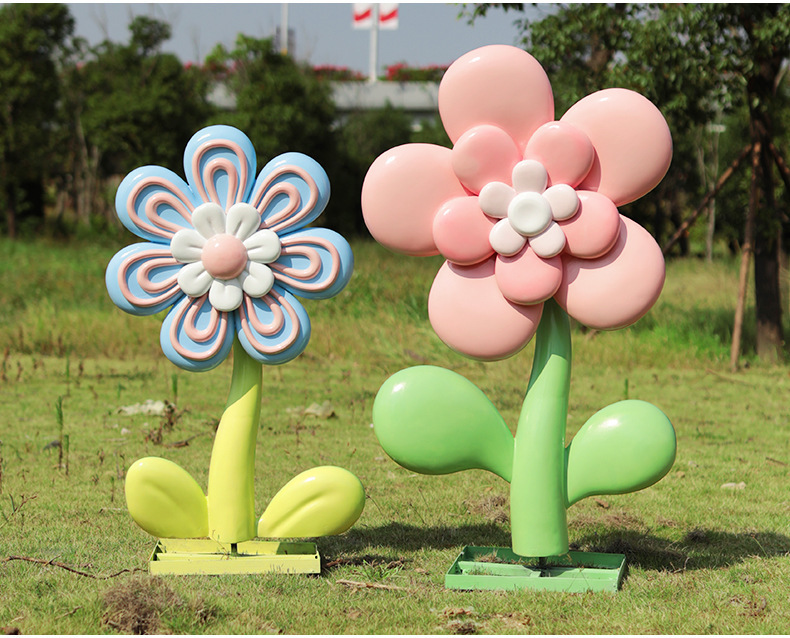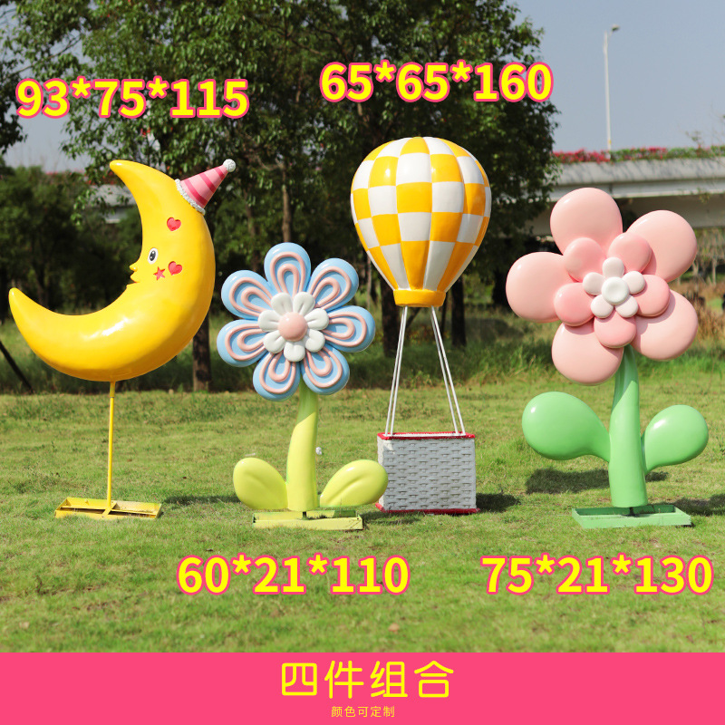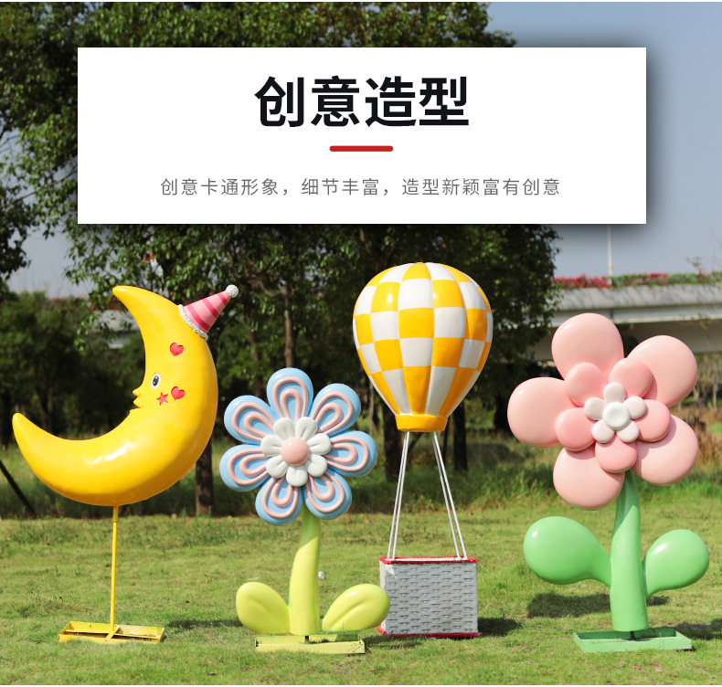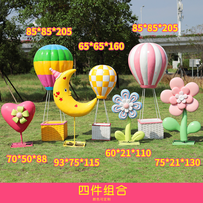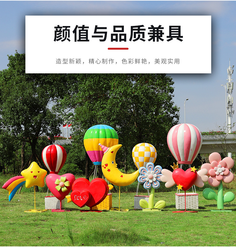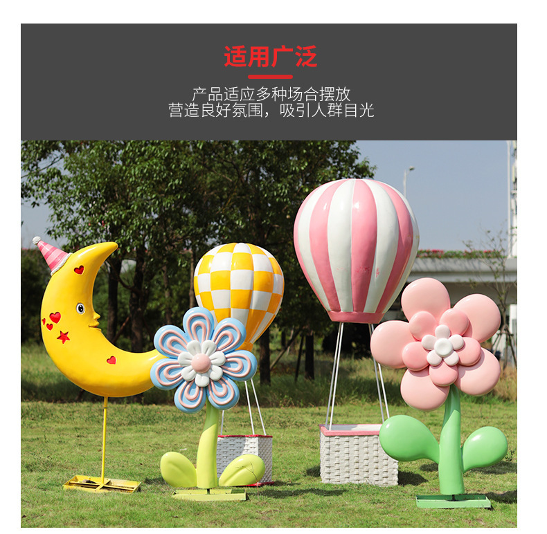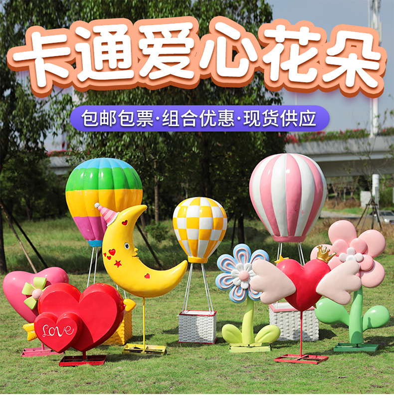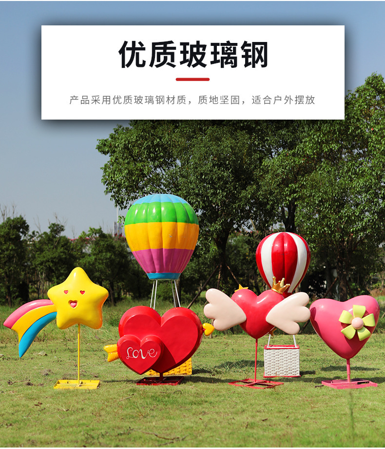 야외 뜨거운 공기 풍선 유리 섬유 강화 플라스틱 창조적 인 사랑 스타 장식품 만화 꽃 조각 잔디 풍경 조각