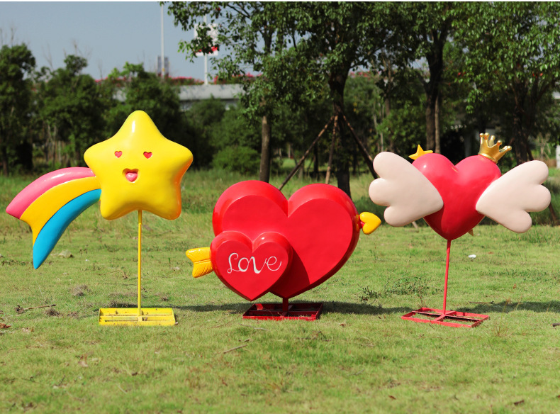 야외 뜨거운 공기 풍선 유리 섬유 강화 플라스틱 창조적 인 사랑 스타 장식품 만화 꽃 조각 잔디 풍경 조각스토어 가기