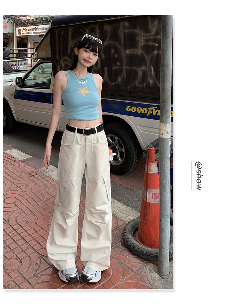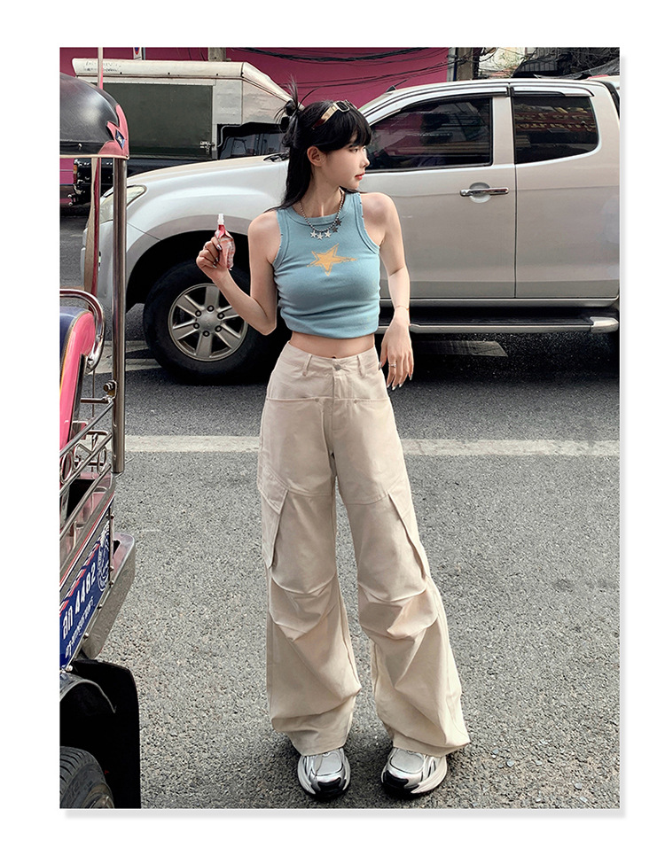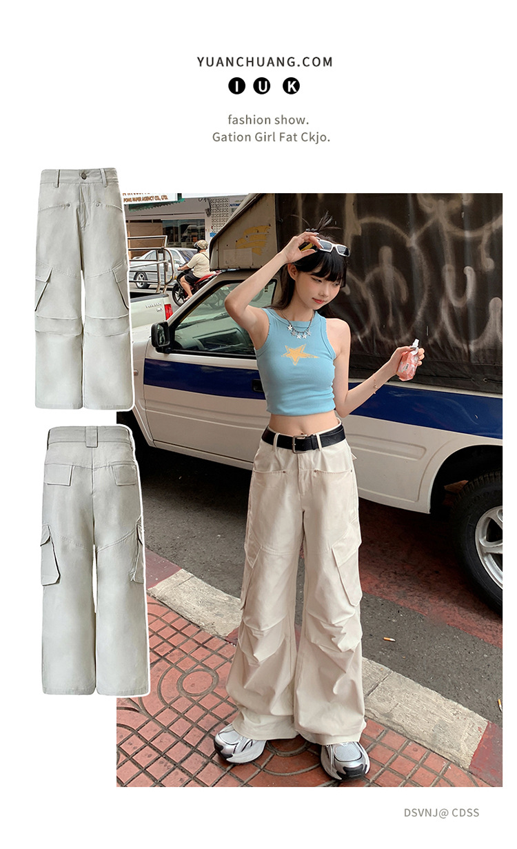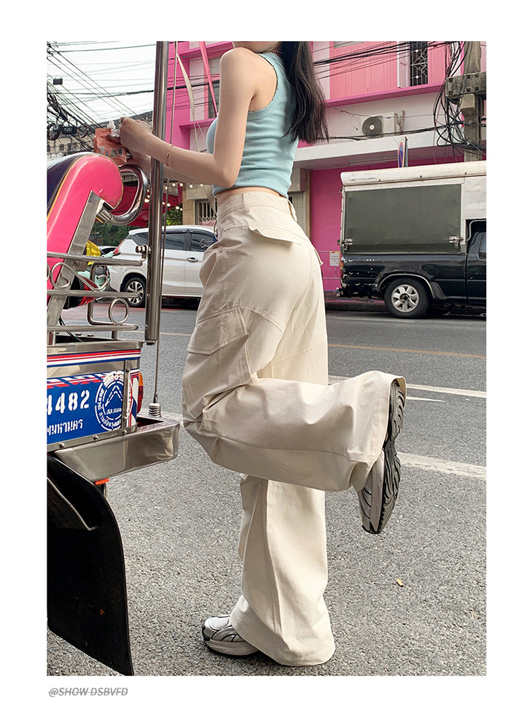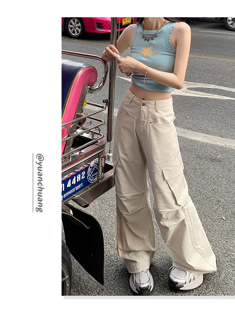디자인 센스 오버볼 여성 여름 긴 키 큰 미국 스타일 레트로 높은 허리 느슨한 스트레이트 캐주얼 와이드 레그 바지스토어 가기