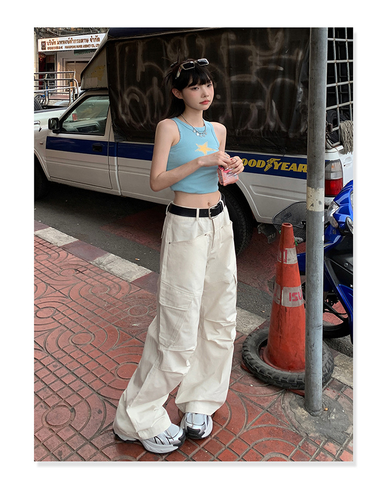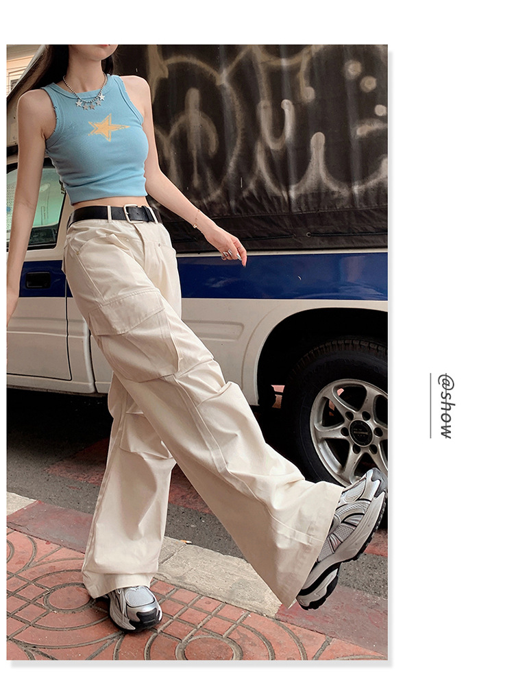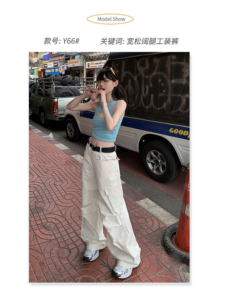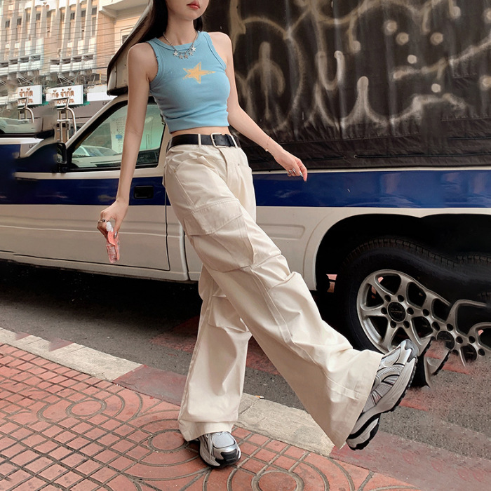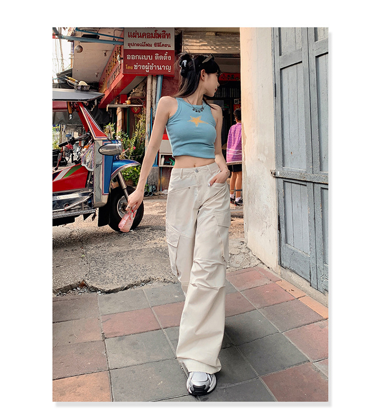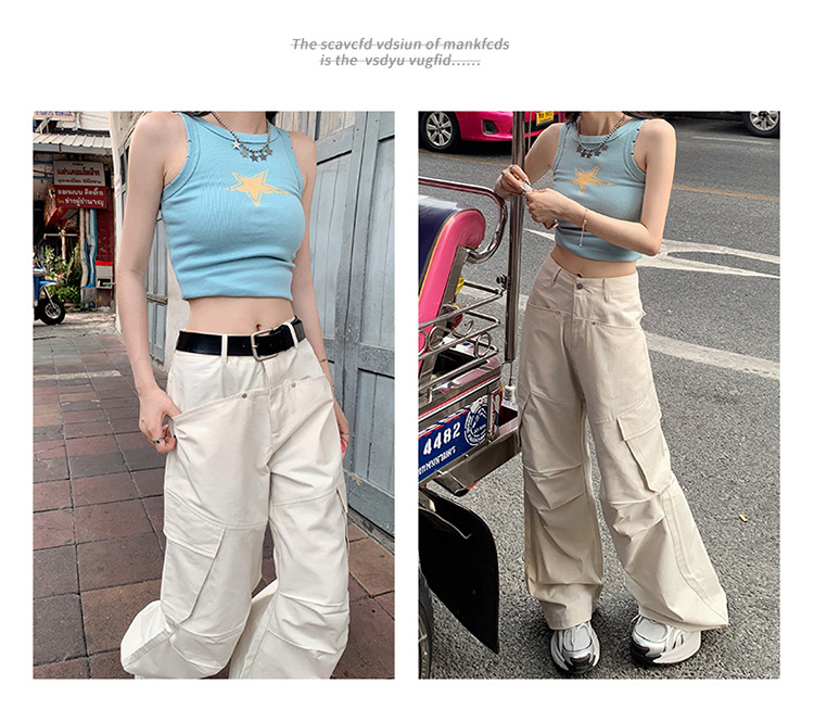 디자인 센스 오버볼 여성 여름 긴 키 큰 미국 스타일 레트로 높은 허리 느슨한 스트레이트 캐주얼 와이드 레그 바지스토어 가기