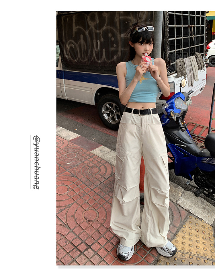 디자인 센스 오버볼 여성 여름 긴 키 큰 미국 스타일 레트로 높은 허리 느슨한 스트레이트 캐주얼 와이드 레그 바지