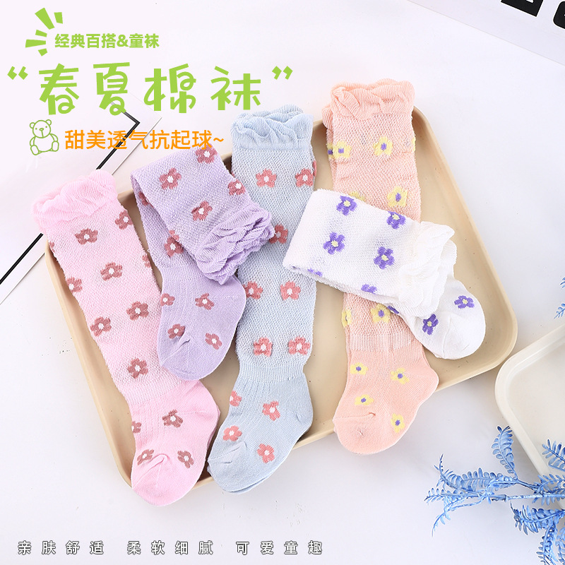 아기 스타킹 여름 얇은 신생아 아기 양말 통기성 메쉬 안티 모기 스타킹 소년 소녀를위한 순수 면화