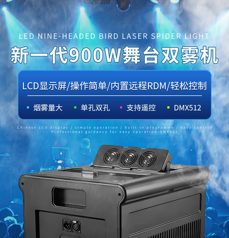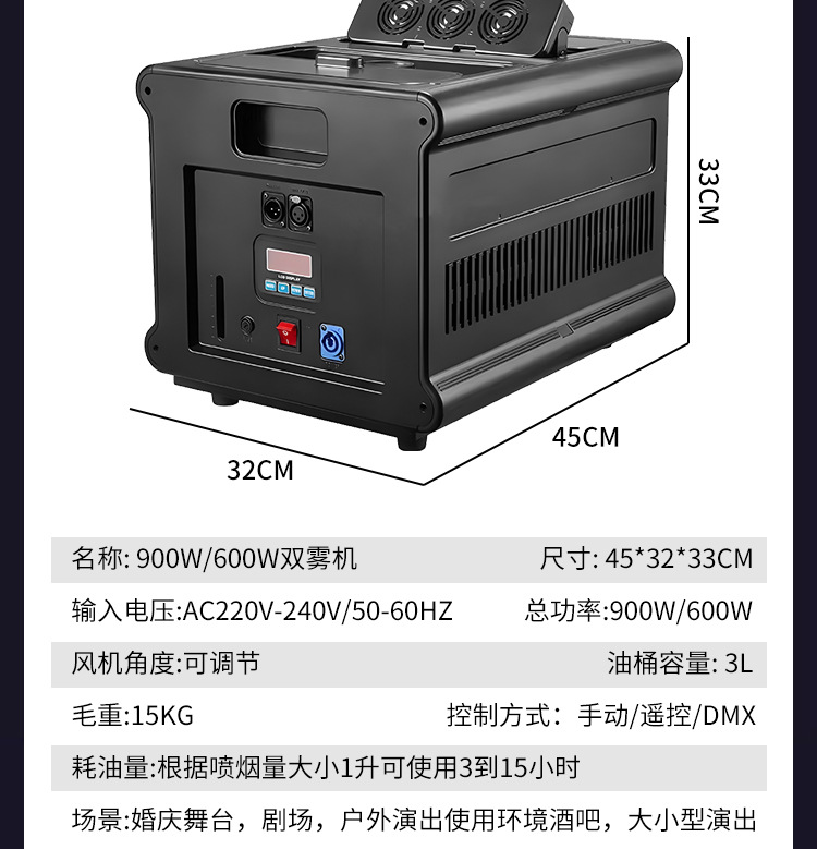 • 업그레이드 된 단일 포트 범용 휠] 900W 이중 안개 기계, 2 병의 이중 안개 오일 제공